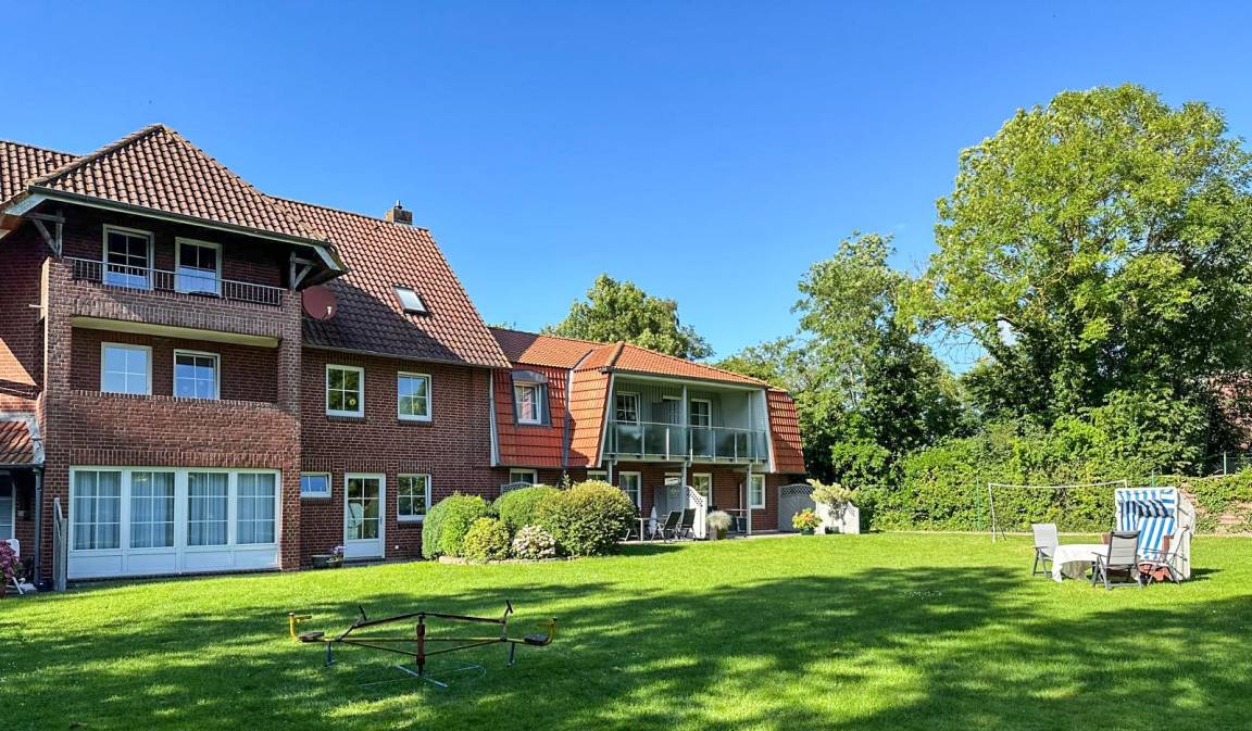 Genießen Sie die Ostseebriese auf Ihrer Terrasse oder dem Balkon. Der große Garten lädt zum träumen ein. Unsere kleinen Gäste nutzen den Spielplatz oder das Gartenhaus während die Eltern im Strandkorb verweilen.