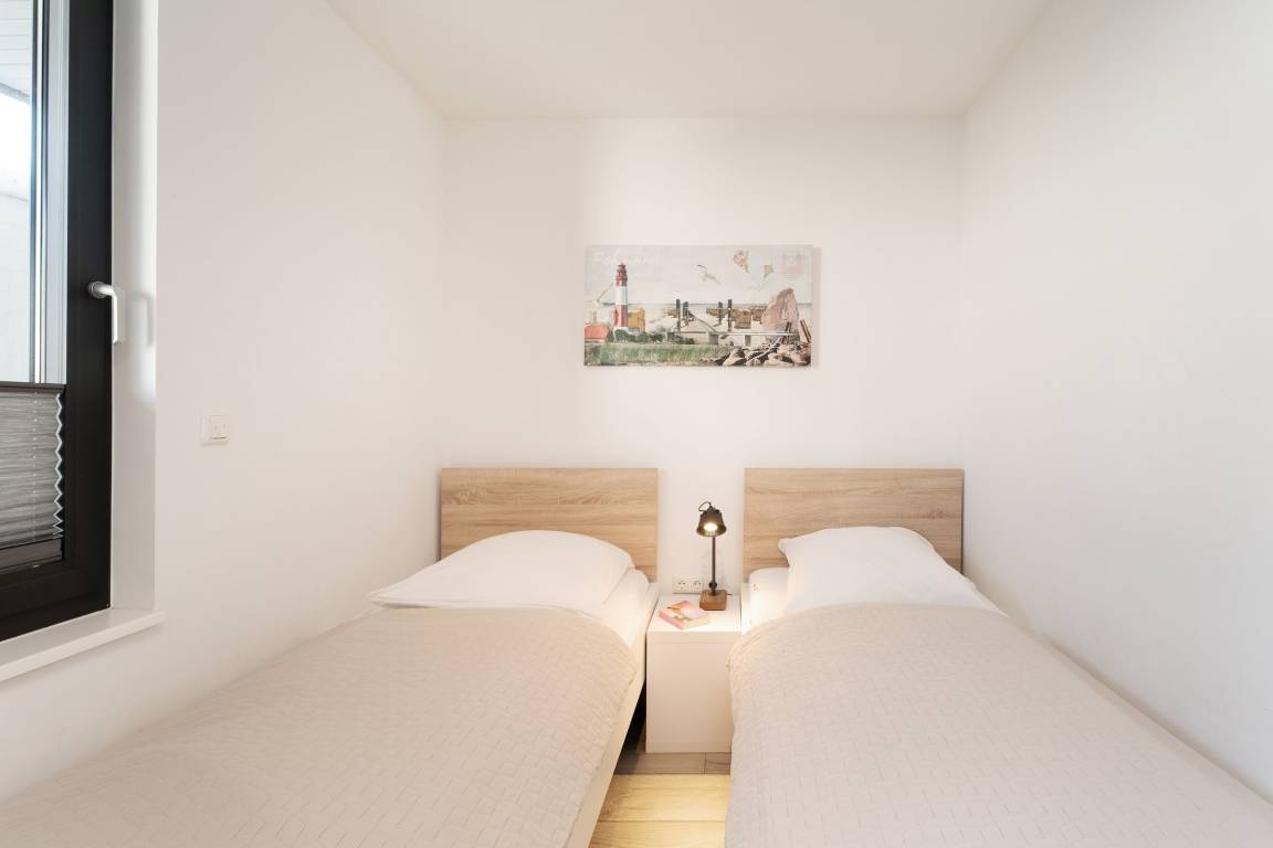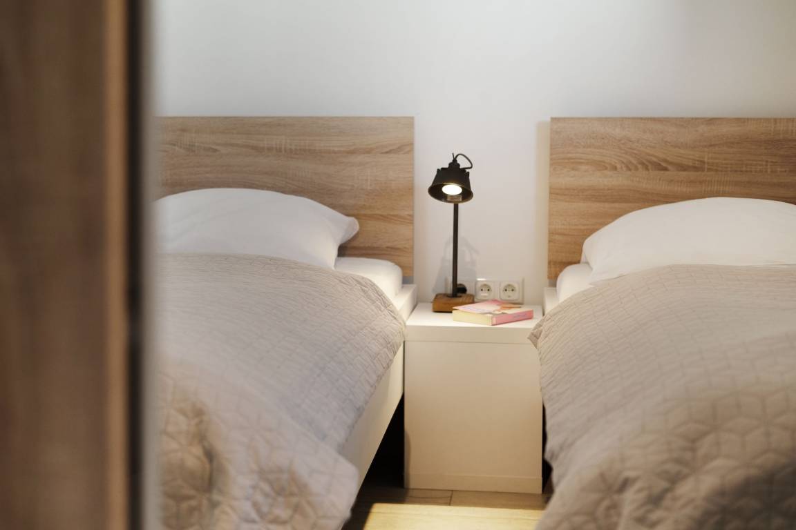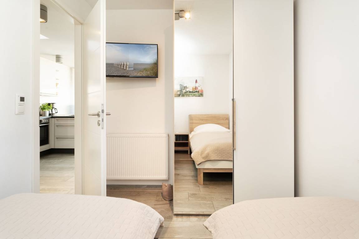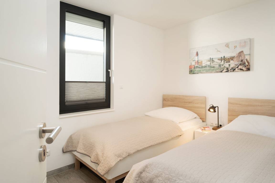 Schlafzimmer 2: 2 Einzelbetten, Kleiderschrank, TV, Verdunkelung (Außenjalousien), TV
