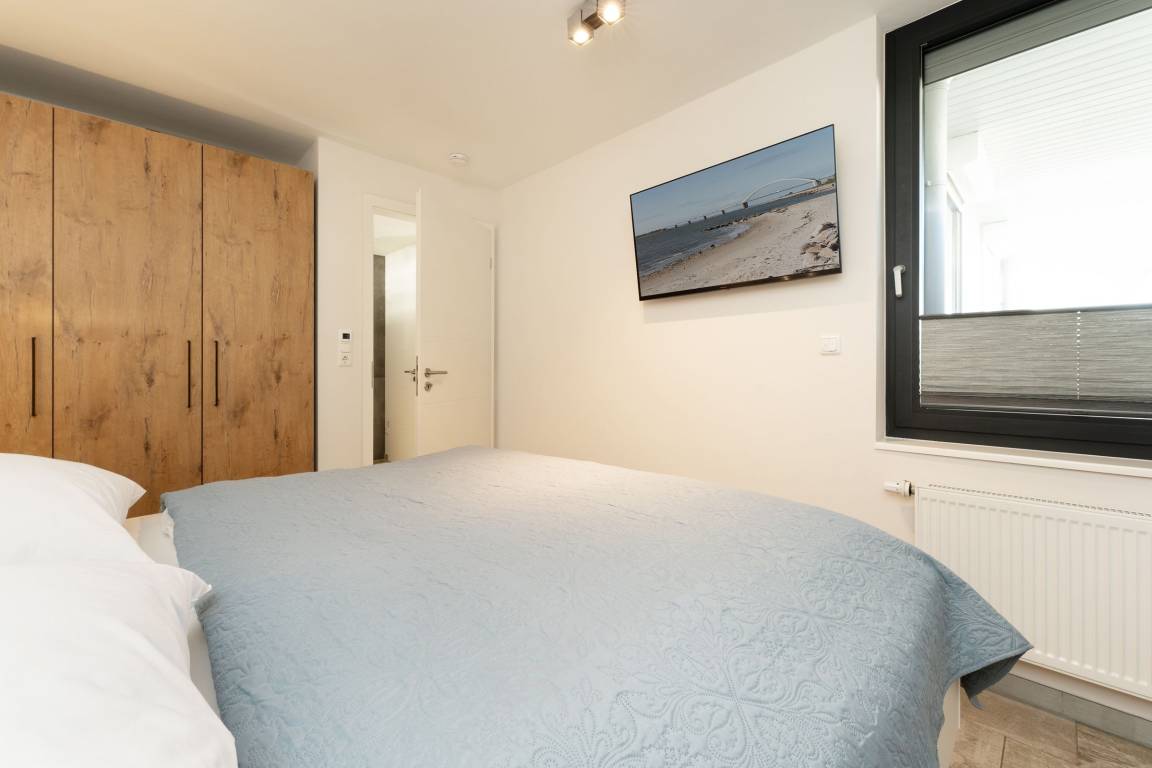 Schlafzimmer 1: Doppelbett, Kleiderschrank, Verdunkelung (Außenjalousien), TV