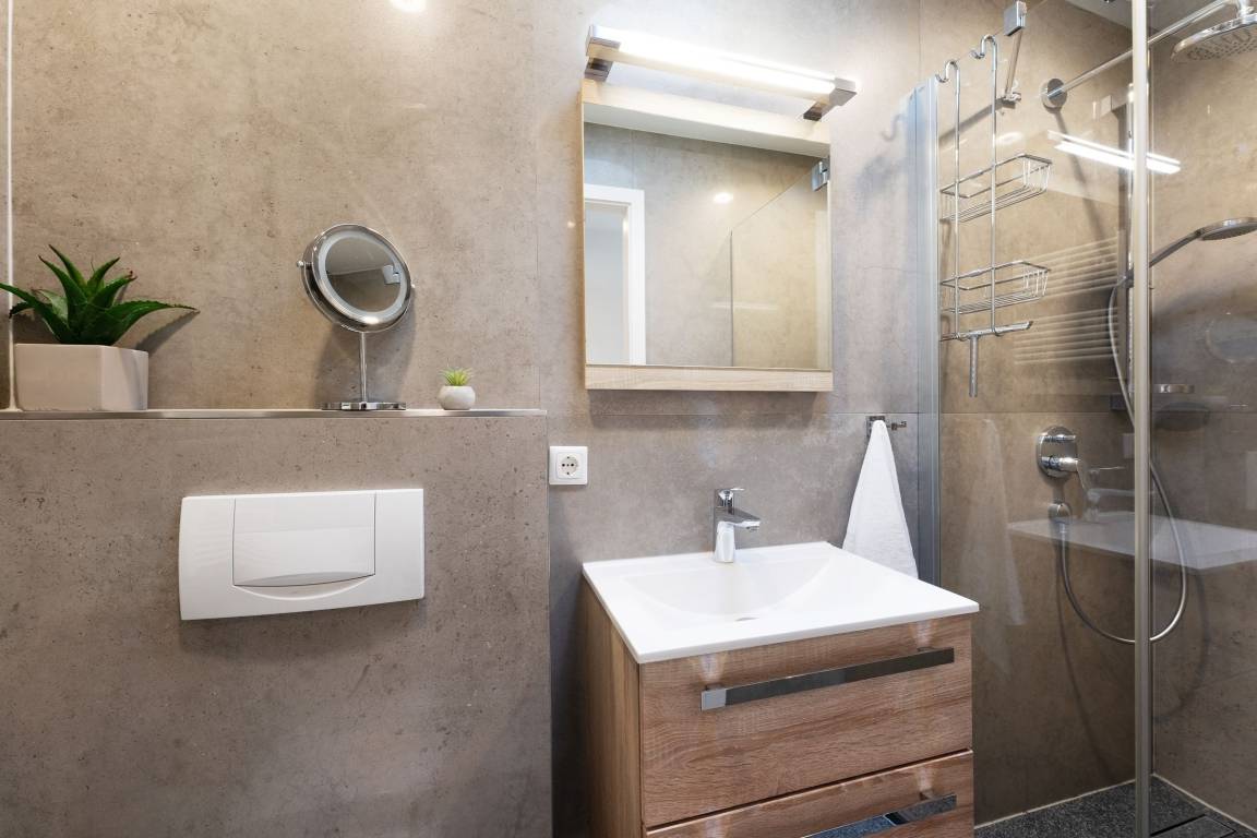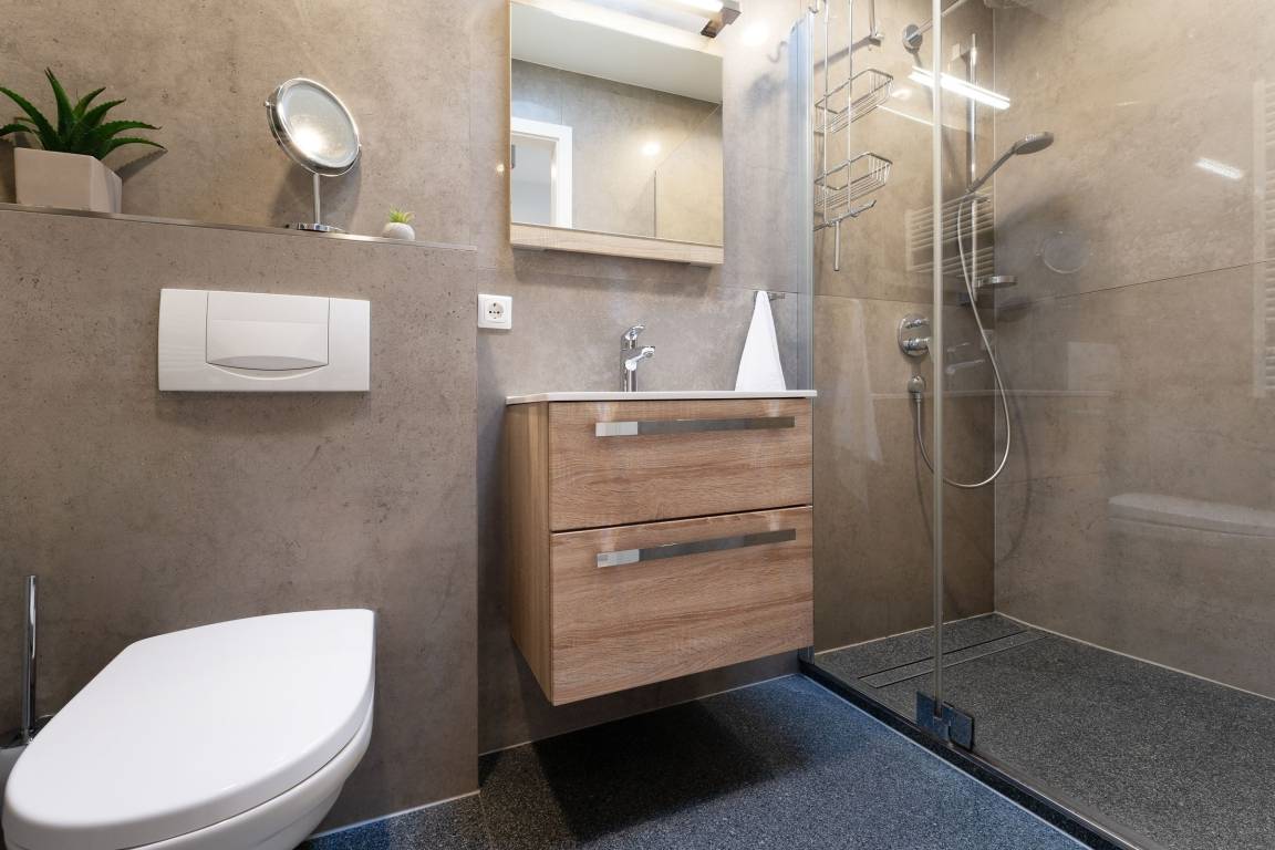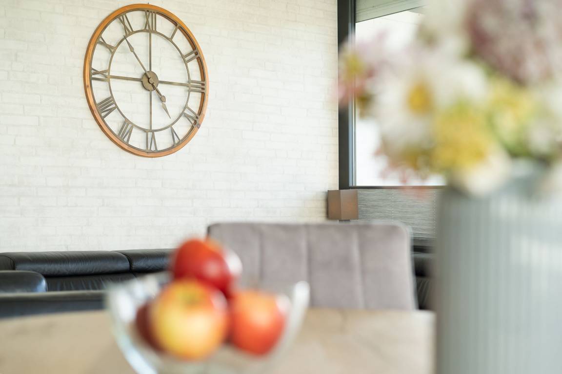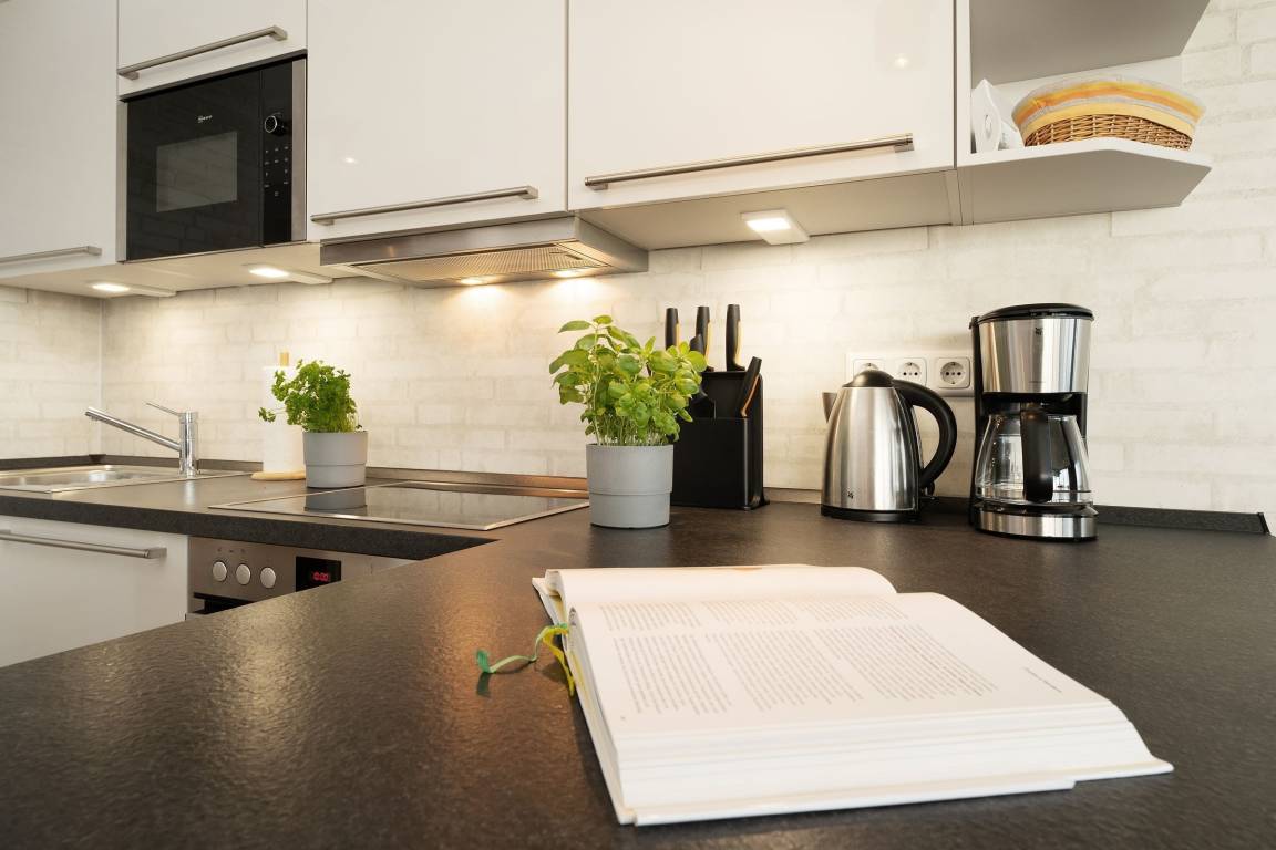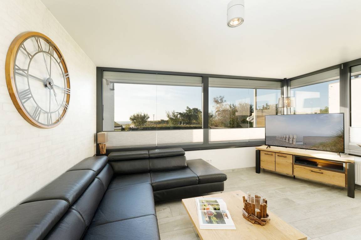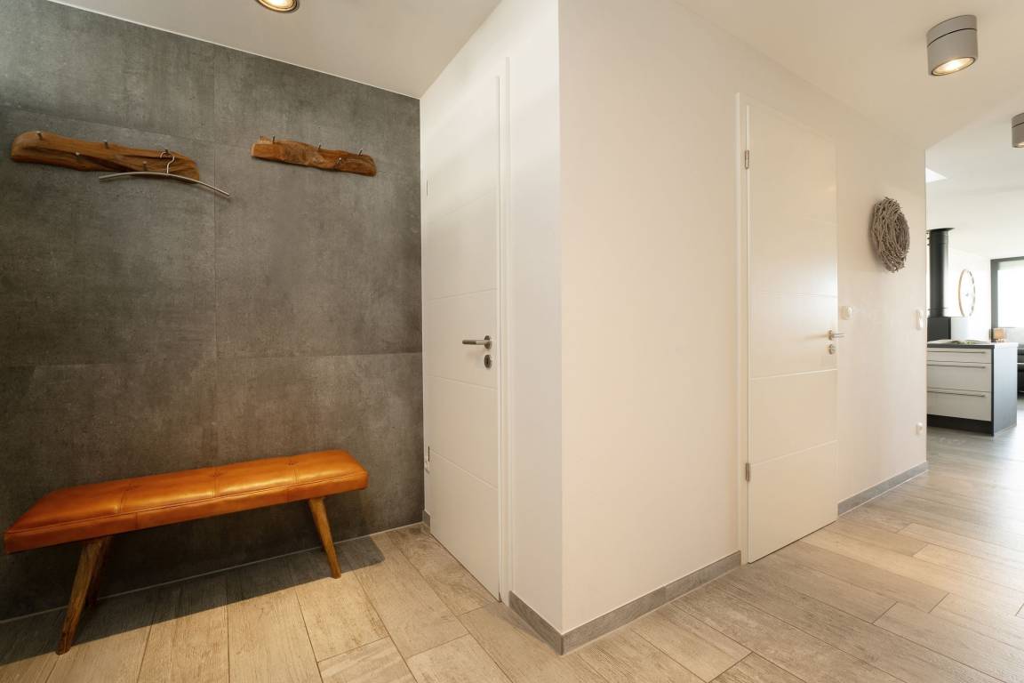 Die moderne Ausstattung in allen Räumen sowie ein komplett gefliester, ebenerdiger Fußboden mit Fußbodenheizung wird Sie sofort begeistern. Der gemütliche Wohn-/Essbereich ist mit einem TV, Blue-ray-Spieler und einer HiFi-Anlage ausgestattet. Die große Ledercouch lädt zum Entspannen ein, ein Kaminofen sorgt für kuschelige Wärme und Gemütlichkeit. Die große Fensterfront über zwei Seiten mit Blick auf die Terrasse schenkt viel Licht und Helligkeit.