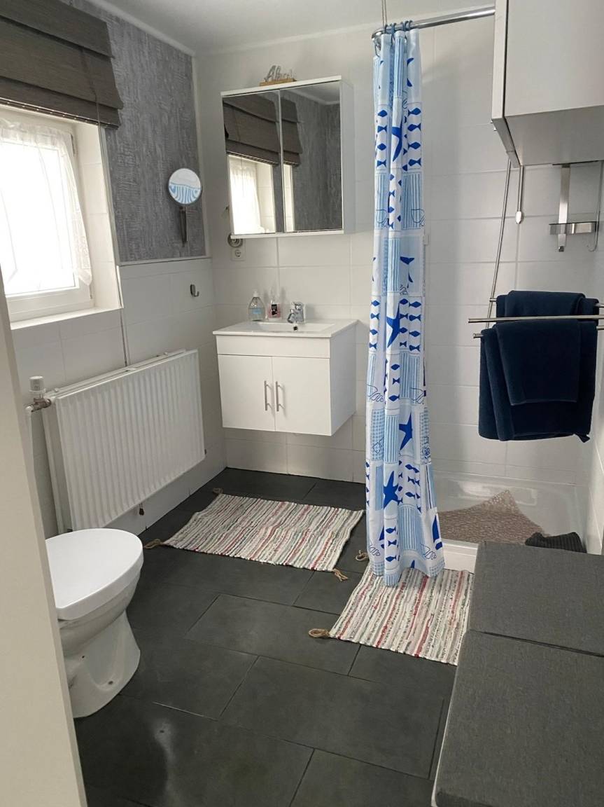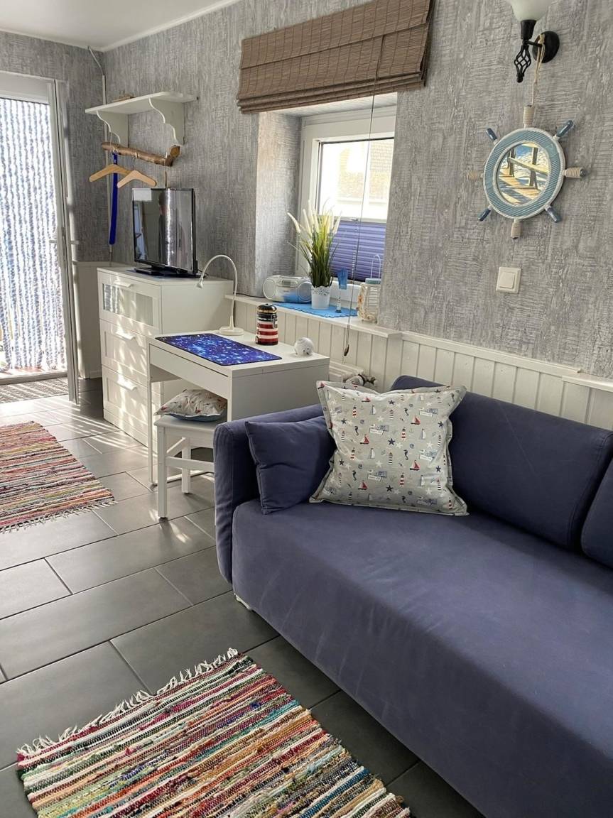 Willkommen in unserem charmanten Apartment. Ein gemütliches Refugium mit maritimen Flair, ideal für zwei Personen. Trotz der kompakten Größe wirkt alles offen und einladend, perfekt für einen unbeschwerten Aufenthalt in einer schönen Atmosphäre. Der liebevoll, gestaltete Raum verbindet Stil und Komfort. Helle, freundliche Möbel und ausgewählte Details erinnern an das Meer und schaffen eine entspannte Atmosphäre. Ob Sie den Trubel der Stadt entfliehen oder einfach die maritime Stimmung genießen möchten, dieses Apartment bietet alles was Sie für einen unvergesslichen Aufenthalt brauchen. Hier können Sie Ihren Alltagsstress hinter sich lassen. Unser Garten ist eine kleine Oase, in der man entspannen kann. Die gemütliche Holzterrasse mit Tisch, Stühlen und großem Sonnenschirm lädt dazu ein, die Luft zu genießen oder den Tag mit einem Glas Wein ausklingen zu lassen. Rund um die Terrasse säumen bunte Blumen und duftende Kräuter, sie verbreiten ein angenehme Urlaubsgefühl. Unsere kleine Oase liegt in Bisdorf im herzen von Fehmarn. Auf Fehmarn gibt es reichlich Freizeitaktivitäten. Ob sportlich aktiv, kulturell interessiert oder auf der Suche nach Erholung sind. Sie können am Strand spazieren gehen, schwimmen, surfen, sonnenbaden oder mit dem Fahrrad die Insel erkunden. Burg ist der Hauptort der Insel und lädt zum bummeln ein, es gibt dort zahlreiche Geschäfte, Cafes und Restaurants. Sehenswert wäre das Heimatmuseum, die St. Nikolei Kirche, der Flügger Leuchturm, der Schmetterlingspark, das Gallileo, das Meereszentrum, oder Sie besuchen eine der zahlreichen Veranstaltungen. Wenn Sie jetzt reif für die Insel sind, kommen Sie nach Fehmarn denn Meer geht immer.