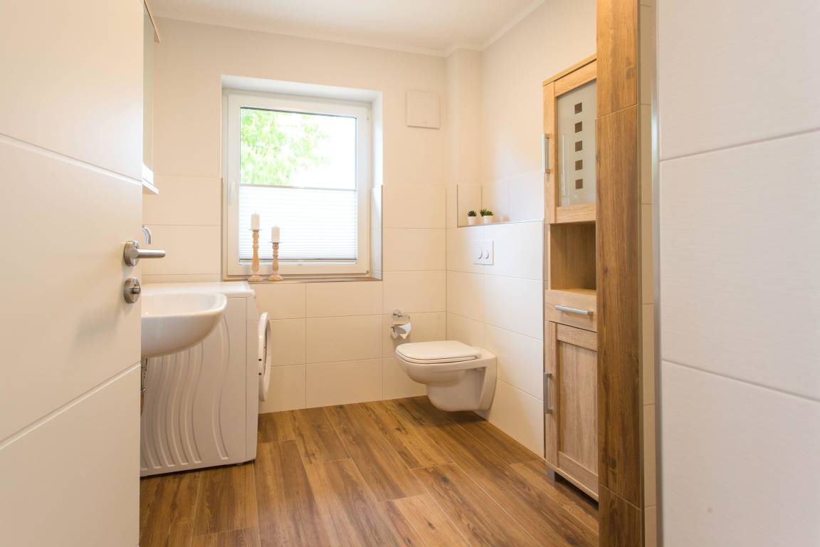 Der offen angeschlossene Wohnbereich bietet Platz für die ganze Familie. Das moderne Tageslicht-Bad mit Dusche und eigener Waschmaschine rundet das Angebot ab.