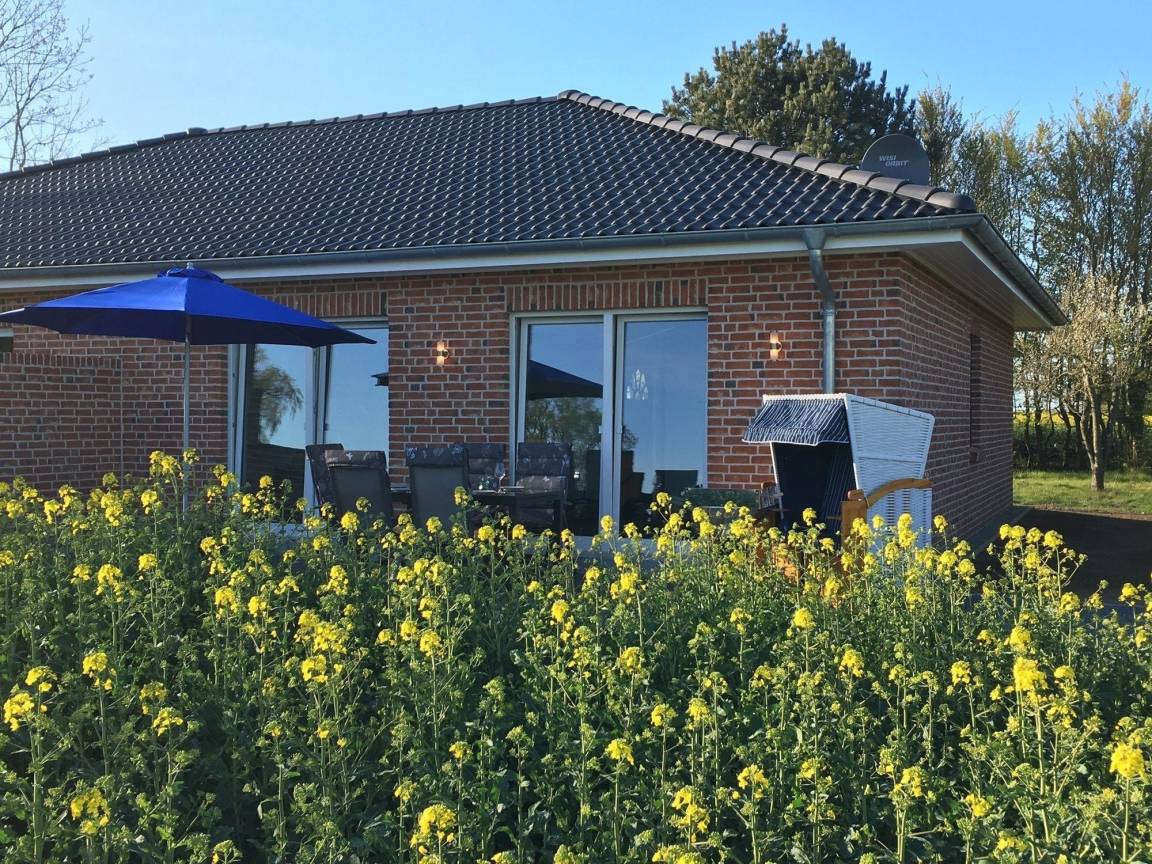 Genießen Sie Ihren Urlaub im 2018 erbauten Doppelbungalow in Gammendorf auf Fehmarn. Die ebenerdigen Wohneinheiten bieten Gemütlichkeit & Komfort in südlicher Dorfrandlage mit großer Terrasse, Strandnähe und freiem Feldblick