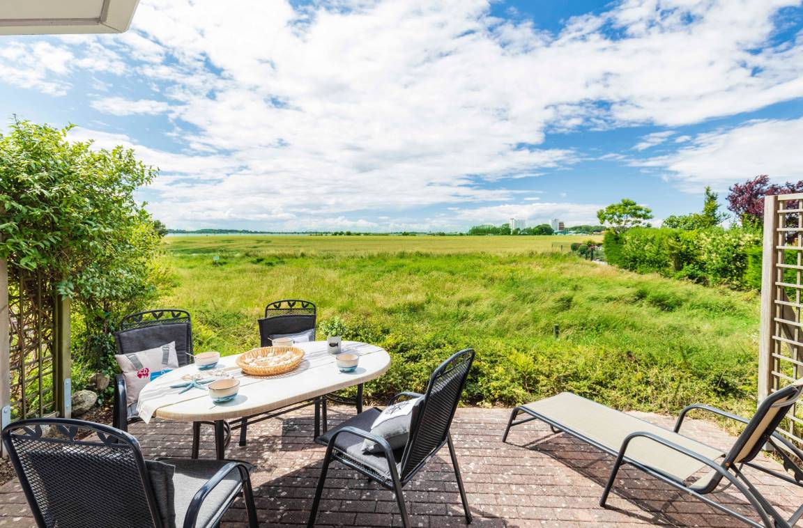Die angrenzende Terrasse vom Wohraum, mit Gartenmöbeln bietet Ihnen einen tollen Blick auf den Burger Binnensee. Am Abend genießen Sie hier den Sonnenuntergang.