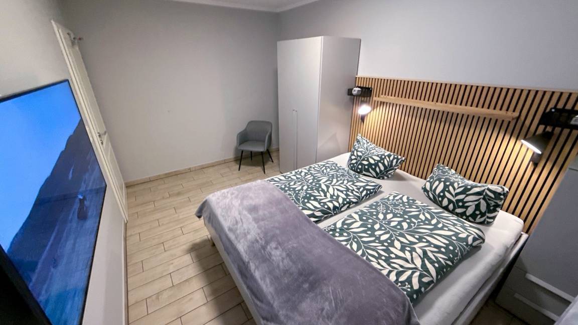 Unsere modernen Ferienhäuser und Reihenhäuser (ca. 90–140 m²) verfügen über 3 separate Schlafzimmer. In der Regel bieten sie Platz für maximal 4 Erwachsene und 2 Kinder (zwei Zimmer mit Doppelbetten, ein Kinderzimmer mit Etagenbett).
