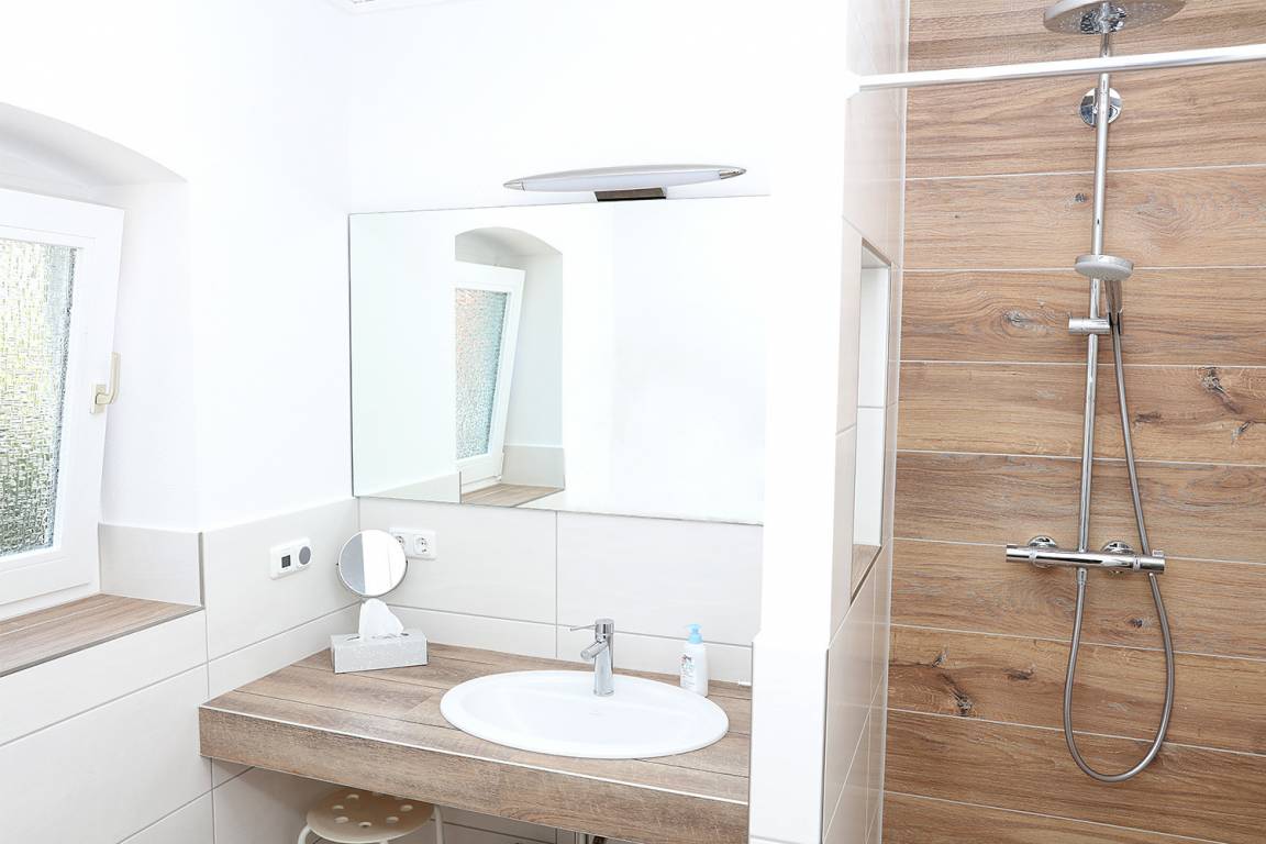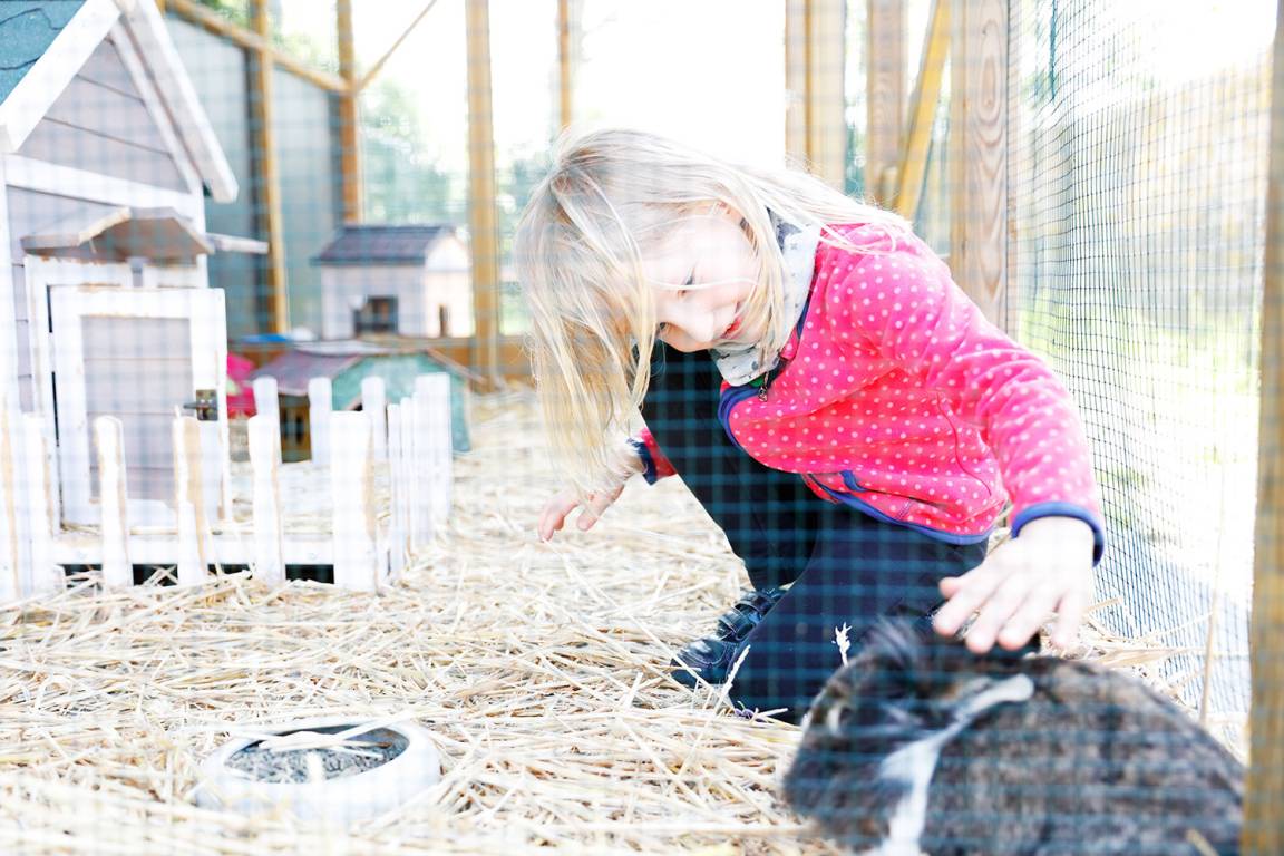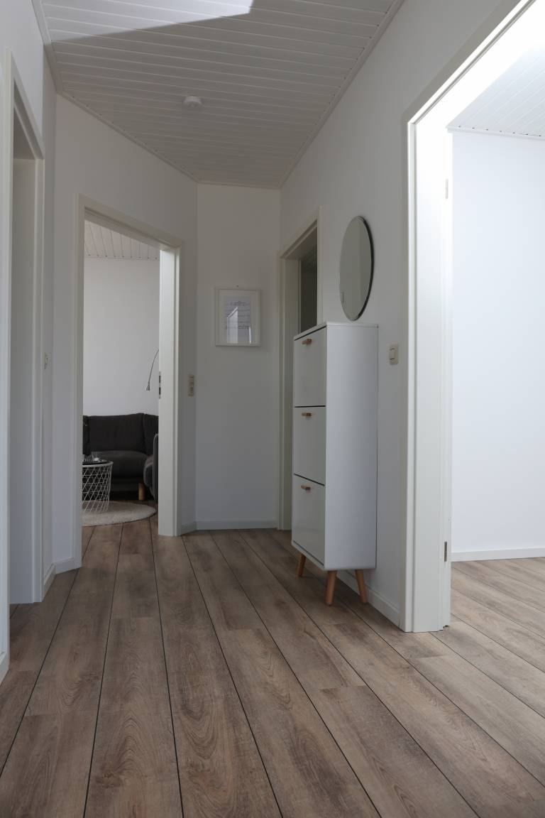 Die Ferienwohnung "Utspann" auf unserem Hof lädt, wie ihr plattdeutscher Name verrät, zum Entspannen ein. Sie ist ebenerdig, 72qm groß und bietet damit ordentlich Platz für bis zu 4 Personen plus ein Kleinkind (Babybett). Vom Flur blickt Ihr durch die Bullaugen-Tür ins Wohn- und Esszimmer. Hier könnt Ihr es Euch auf dem großen Sofa oder in den Sesseln gemütlich machen. Eure zwei Schlafzimmer sind mit einem großen Boxspringbett für Zwei und einem Familienbett für Drei ausgestattet. Optional stellen wir noch ein Babybett. Eine moderne Küche und ein schickes Bad gehören natürlich auch dazu, außerdem habt Ihr eine große Südterrasse. Auch auf dem gesamten Hofgelände findet Ihr genügend Lieblingsplätze für Groß und Klein. Bei kühlerem Wetter könnt Ihr Euch in der Infrarotkabine ("Wohlfühlsauna") in unserer Scheune aufwärmen. Auf die Kleinen warten unsere Dinocars und andere Fahrzeuge, ein Spielplatz und Trampolin, eine Spielhalle, Tischkicker, Tischtennis, ein Spielzimmer und ein riesiger Garten zum Austoben. Außerdem freuen sich unsere Ziegen und Kaninchen auf einen Snack oder eine Streicheleinheit. Also: Auf gehts, einfach mal stranden!