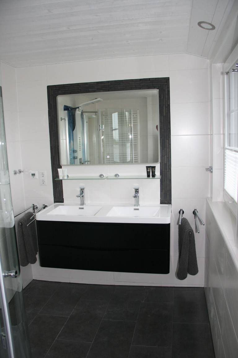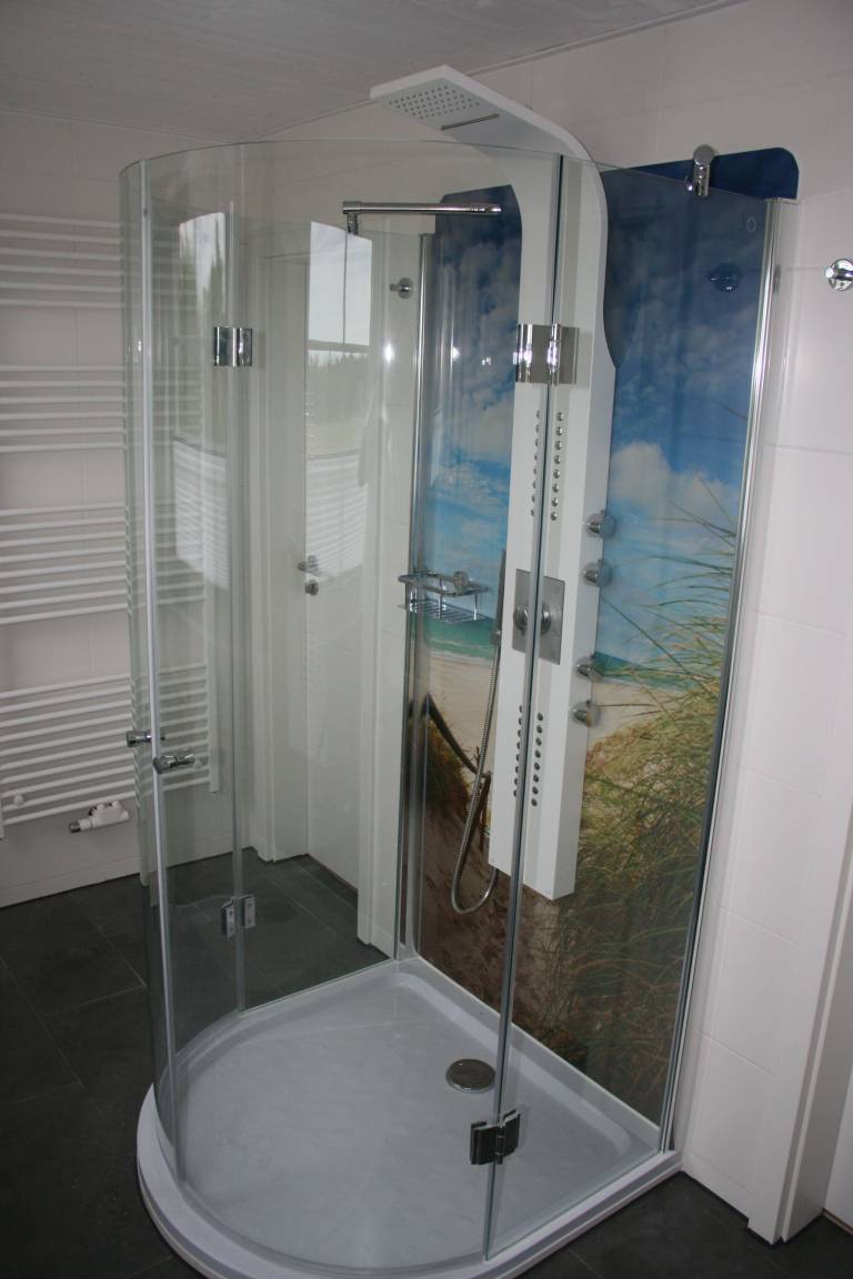 Im Dachgeschoss befinden sich 2 Schlafzimmer mit je einem Doppelbett. Babybetten können in beiden Zimmern zugestellt werden. Auch im modernen Bad im DG sorgt eine el. Fußbodenheizung für wohlige Wärme.