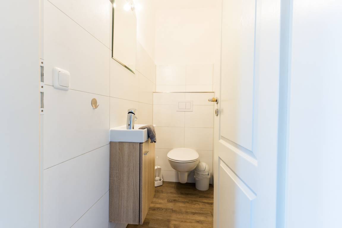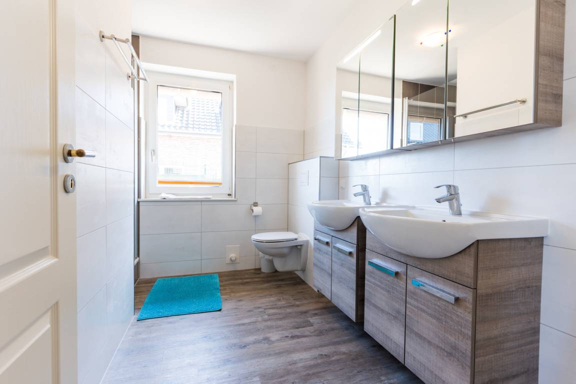 Es gibt außerdem ein Duschbad mit WC und ein separates Gäste-WC.