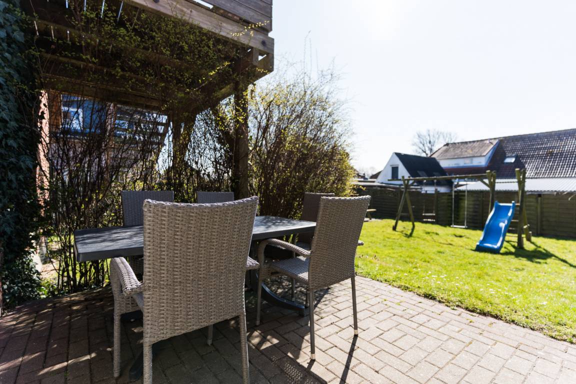 Die große Wohnung im Erdgeschoss eignet sich perfekt für den Urlaub als große Familie oder unter Freunden.