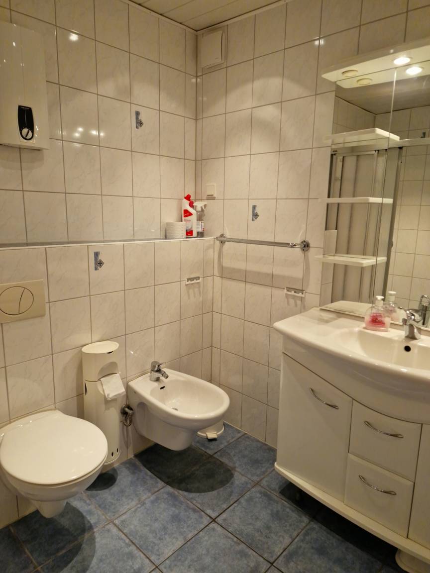 Neben drei Schlafräumen (mit einem Doppelbett 160x200, zwei Einzelbetten 90x200 und einem Etagenbett 90x200) verfügt die Ferienwohnung über ein Badezimmer und ein zusätzliches Gäste WC.