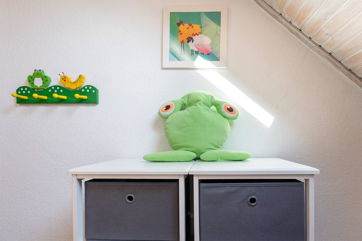 Das charmante Gebäude wurde im Fachwerkstil erbaut und liegt idyllisch am Dorfteich. Die Ferienwohnung besticht durch eine liebevoll ausgesuchte Einrichtung. Im geräumigen, kombinierten Wohn-/Schlafraum befindet sich neben einer kuscheligen Sitzecke mit TV ein Doppelbett unter gemütlichen Dachschrägen. Im separaten Schlafraum steht ein Kojenbett. Die Kochnische eignet sich gut, um sich auch im Urlaub seine Lieblingsspeisen zu kochen. Das Badezimmer erwartet Sie mit Dusche, WC und Fenster. Freuen Sie sich bei gutem Wetter auf einen ruhigen Terrassenplatz im Garten.