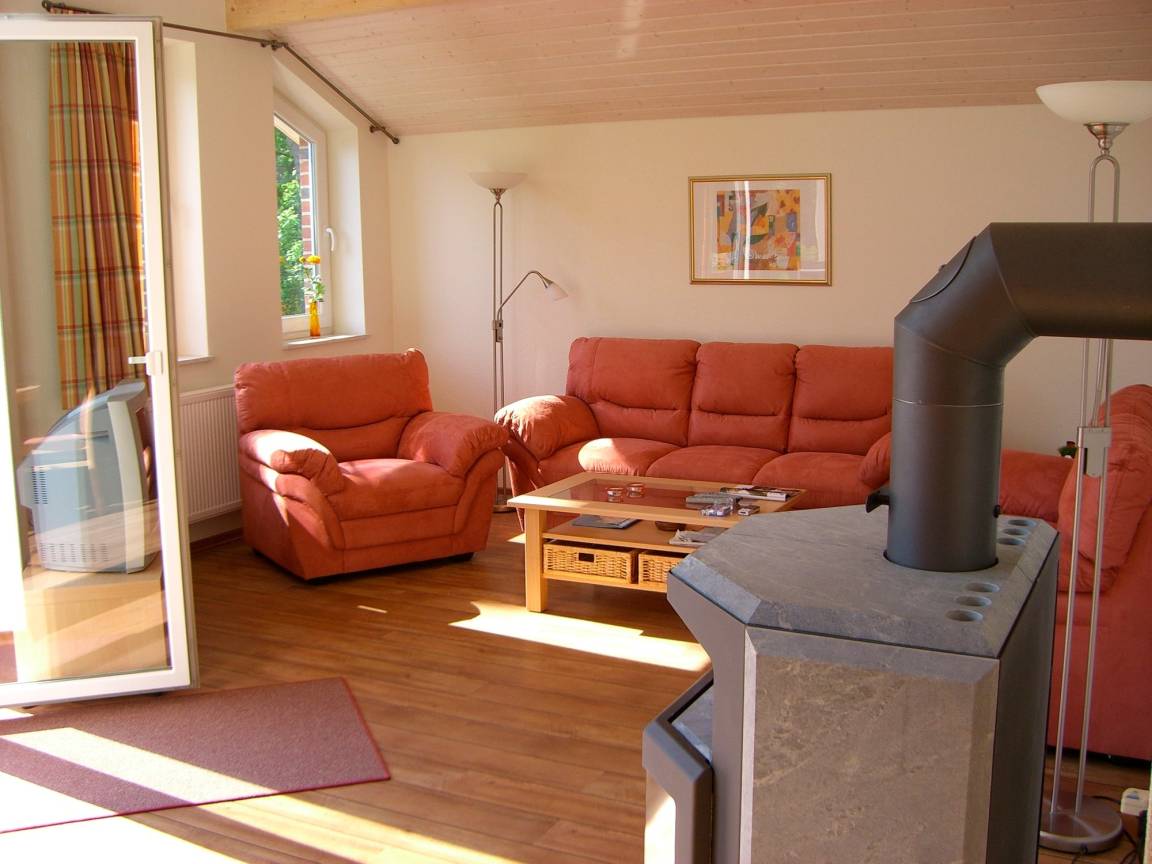 hat eine Größe von 70qm. Der großzügige Wohnbereich mit gemütlicher Sitzecke, Kamin und Essecke lädt zu gemütlichen Stunden ein. Die offene Küchenzeile lässt das Kochen im Urlaub zum Familienerlebnis werden. Natürlich ist die Küche komplett ausgestattet mit Geschirrspüler, Mikrowelle, Backofen etc. Ein Schlafzimmer verfügt über Doppelbetten, im anderen befinden sich zwei Einzelbetten.