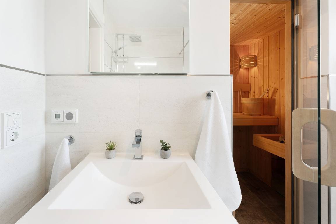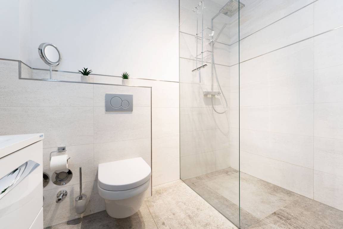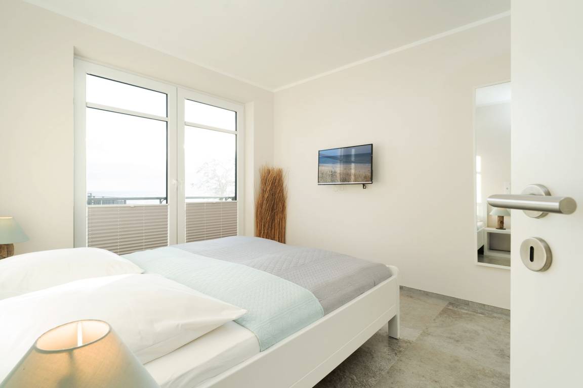 Lichtdurchflutende Fenster mit Blick auf die Ostsee und eine moderne, offene und sehr gut ausgestattete Küche mit angrenzendem Ess- und Wohnbereich laden Sie zum Erholen ein. Es gibt drei Schlafzimmer mit jeweils einem Doppelbett und einem TV-Gerät. Die zwei hochwertig ausgestatteten Duschbäder, eins davon mit einem Fenster, haben jeweils eine bodengleiche Dusche. Die Wohnung ist komplett gefliest und mit einer Fußbodenheizung ausgestattet. Der möblierte Balkon mit Meerblick und Strandkorb lädt zum Entspannen und Verweilen ein.