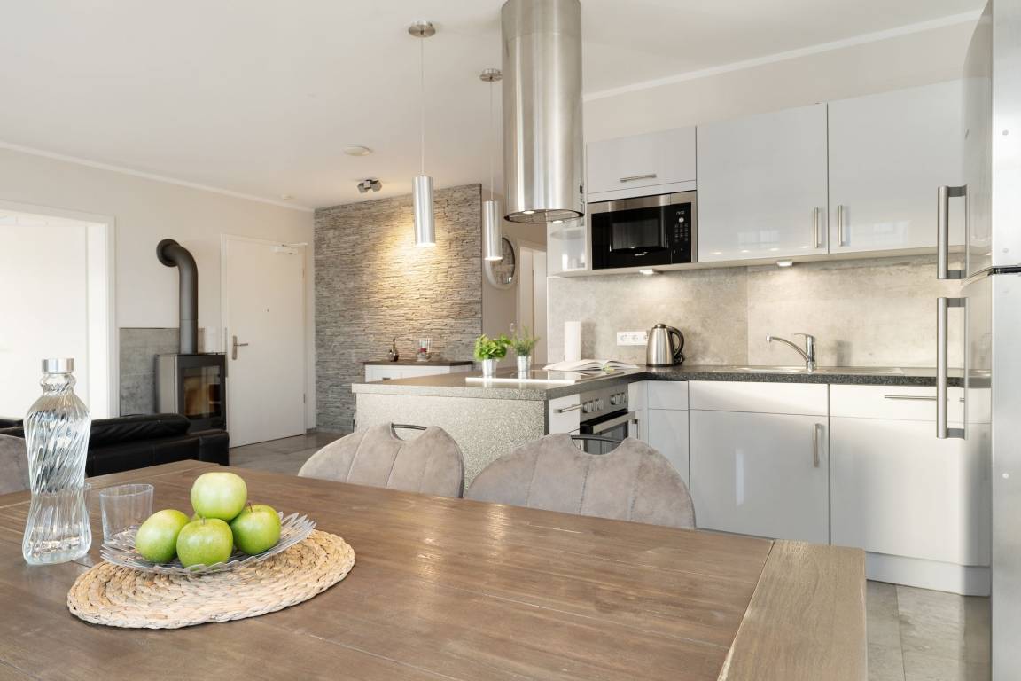 In bester Lage von Fehmarnsund: Dieses exklusive 4-Zimmer-Feriendomizil im 1. Stock mit Balkon hat eine Größe von ca. 100 m² und bietet Platz für bis zu 6 Personen. Mit einer eigenen Sauna, einem Weinkühlschrank, einem Ofen im Wohnbereich sowie traumhaften Meerblick bietet diese moderne Wohnung Urlaub der Extraklasse.