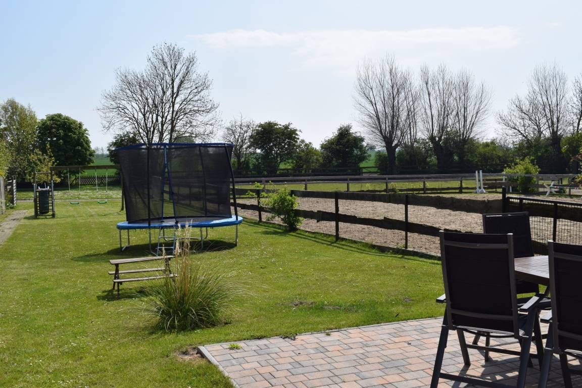 Im Innenhof ist eine kleine Sitzecke, weiter geht es in den Garten mit bestem Ausblick über die Felder. Dort ist eine weitere gepflasterte Ecke mit Tisch, Stühlen und Liegen für Grillabende und Sonnenbäder. Der Garten lädt zum Faulenzen ein. Ein Parkplatz befindet sich direkt vor der Tür. Ein Abstellraum für Fahrräder ist ebenfalls vorhanden.