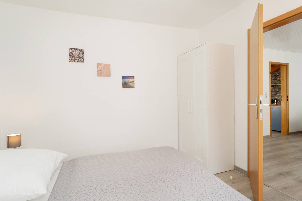 Schlafzimmer (EG): 1 Doppelbett (2x 90x200 cm), Kleiderschrank, Verdunkelung: Plissees und Vorhänge, Platz für ein Babybett