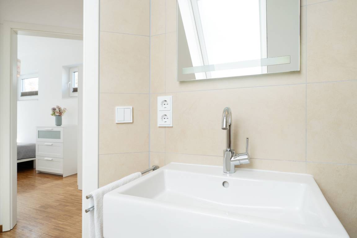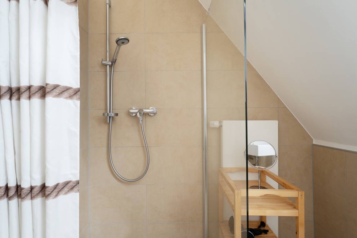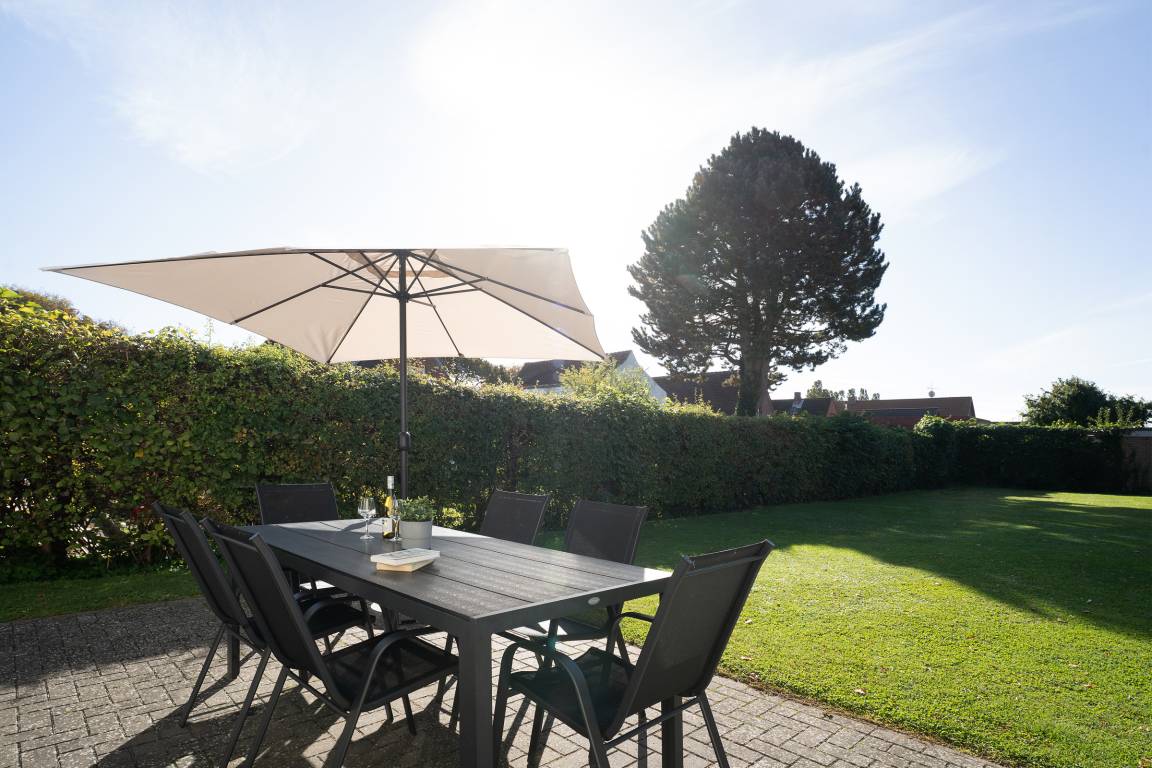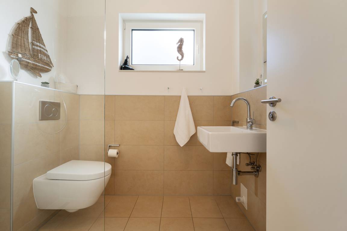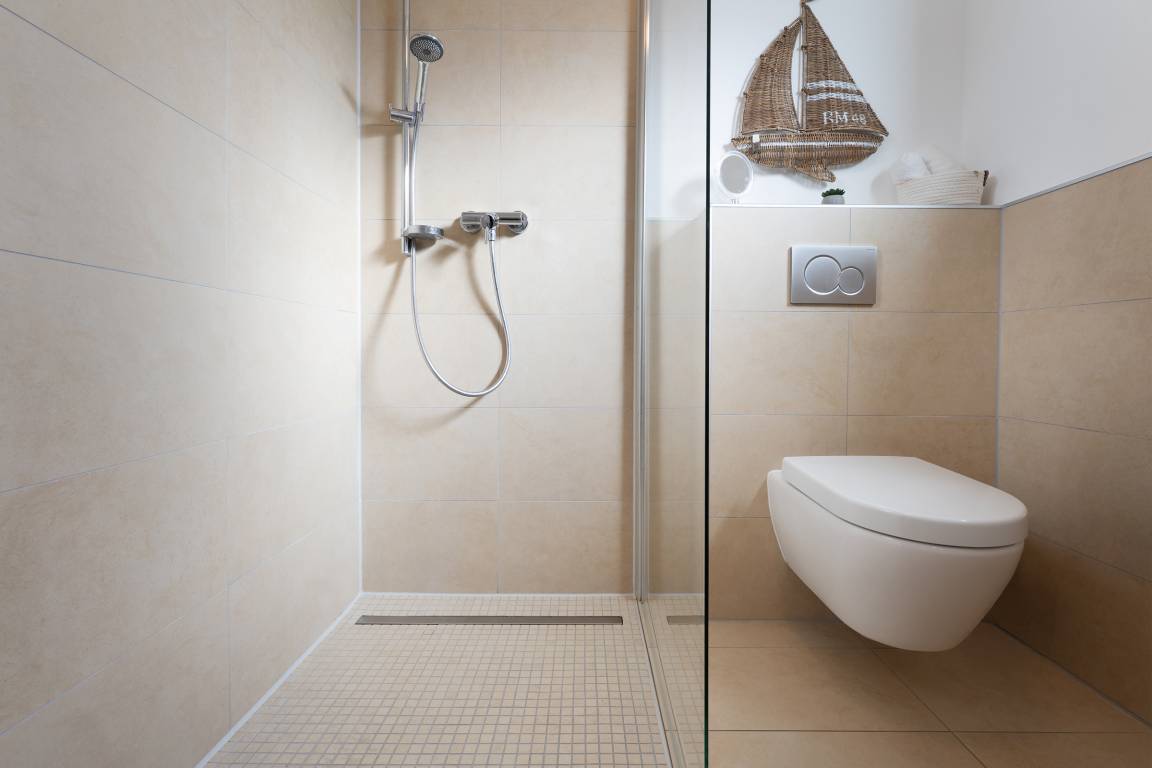 Im lichtdurchfluteten Wohnbereich erwartet Sie eine gemütliche Sofaecke mit TV, die zum Entspannen nach einem erlebnisreichen Urlaubstag einlädt. Von hier aus gelangen Sie direkt auf die großzügige, 20 m² große Terrasse in Südausrichtung. Sie ist mit Gartenmöbeln ausgestattet und das Grillen (mit einem eigenem Grill) ist erlaubt – perfekt für gesellige Sommerabende. Die offene Küche ist umfassend ausgestattet mit Backofen, Cerankochfeld, Geschirrspüler, Kühlschrank mit Gefrierfach, Mikrowelle, Kaffeemaschine und Wasserkocher und lässt keine Wünsche offen. Der angrenzende Essbereich bietet ausreichend Platz für gemeinsame Mahlzeiten. Drei Schlafzimmer sorgen für erholsamen Schlaf: eines mit Doppelbett, eines mit zwei Einzelbetten sowie ein weiteres mit einem kleinen Doppelbett (140x200 cm). Zwei moderne Bäder mit bodengleichen Duschen, WC, Kosmetikspiegel, Haartrockner und Fußbodenheizung runden den Wohnkomfort ab.