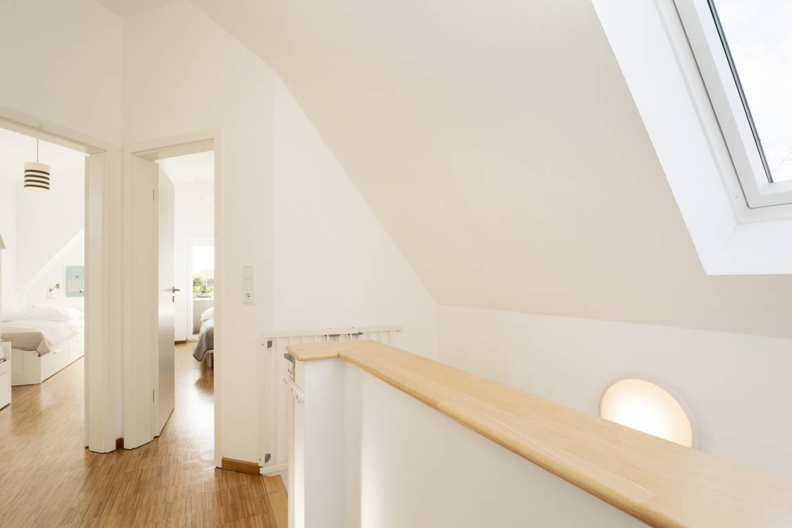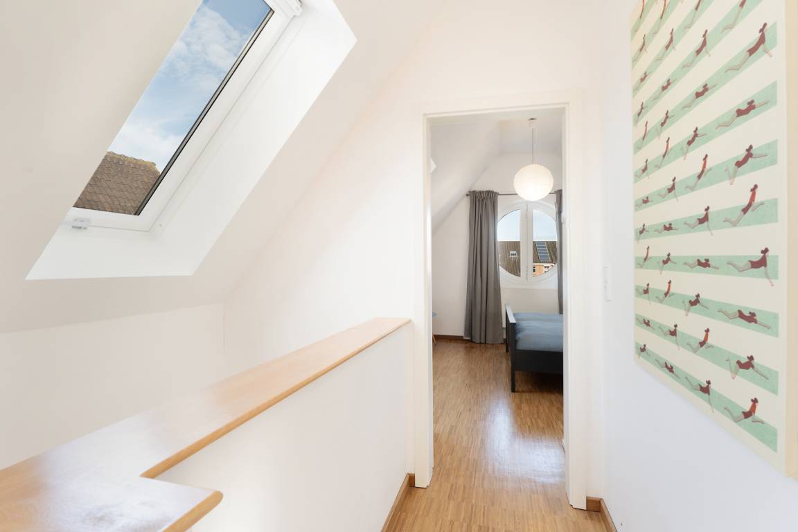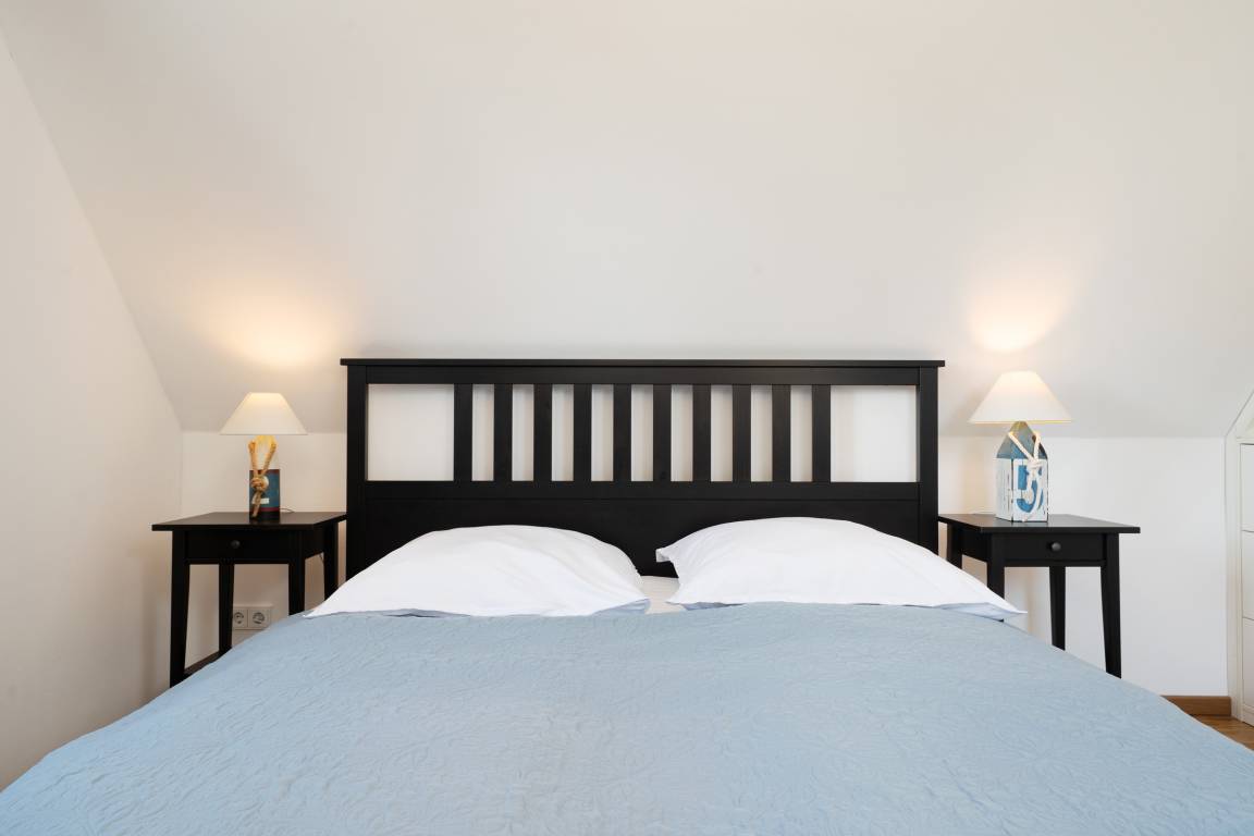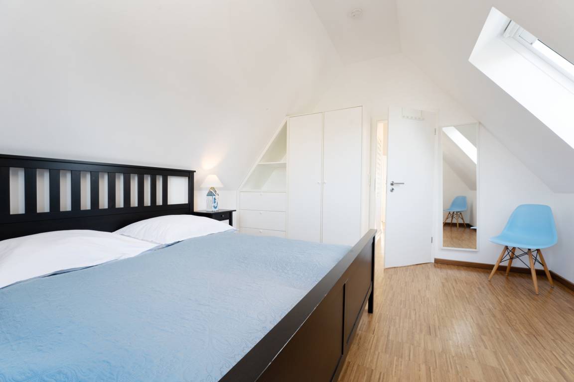 Schlafzimmer 1: 1 Doppelbett (2x 90x200cm), Kleiderschrank, Verdunkelung: Velux Dachrollo und Verdunkelungsvorhang, Platz für ein Babybett vorhanden