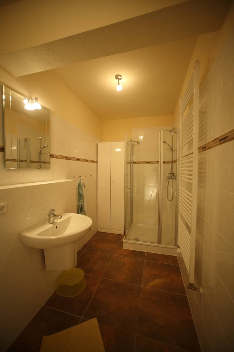 Die Tenne 3 befindet sich unten rechts in dem Gebäude, direkt neben der Spielscheune. Mit einem Elternschlafzimmer und einem Kinderschlafzimmer bietet sie auf ca. 60 m² großzügigen Platz für eine Familie mit 2 Kindern.