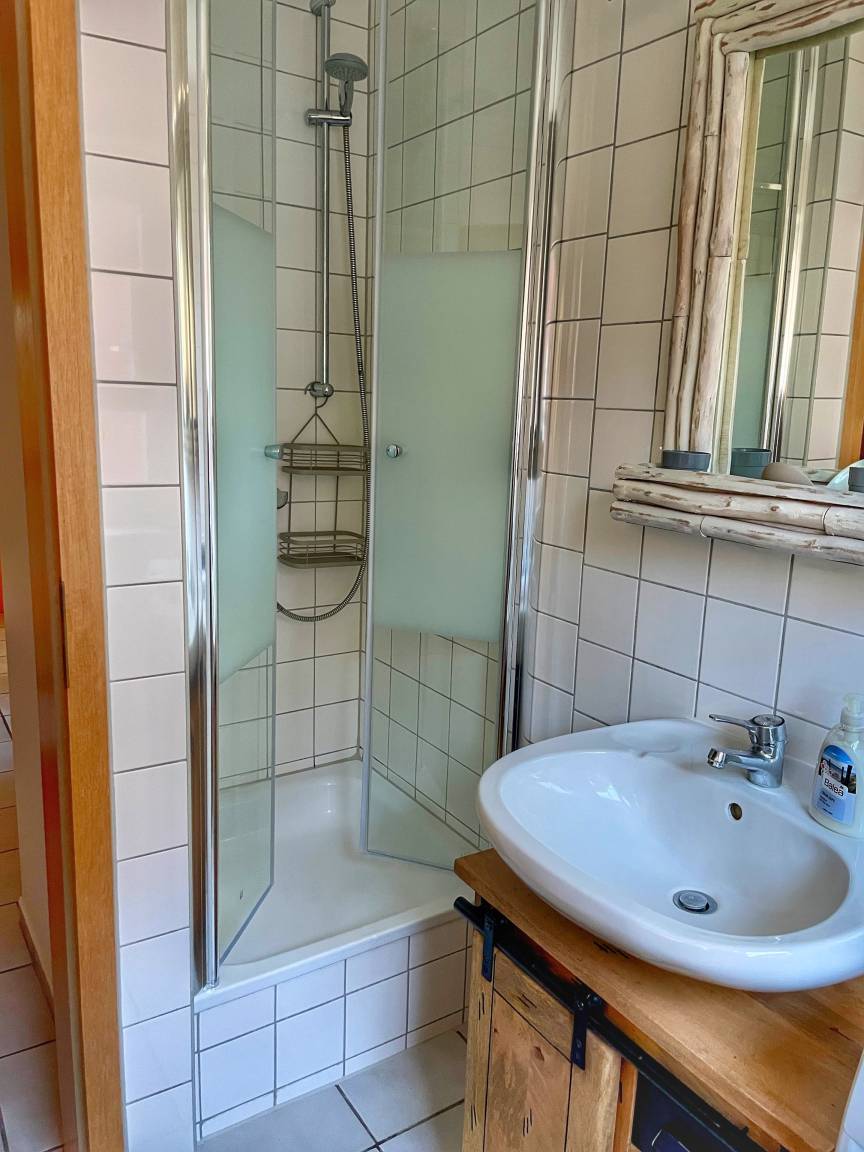 Das Badezimmer ist mit einer Dusche ausgestattet und die Küche wurde neu modernisiert und verfügt über alle notwendigen Geräte, sowie einen extra Gefrierschrank. Auf der Terrasse mit Gartenanteil können Sie die sonnigen Tage genießen.