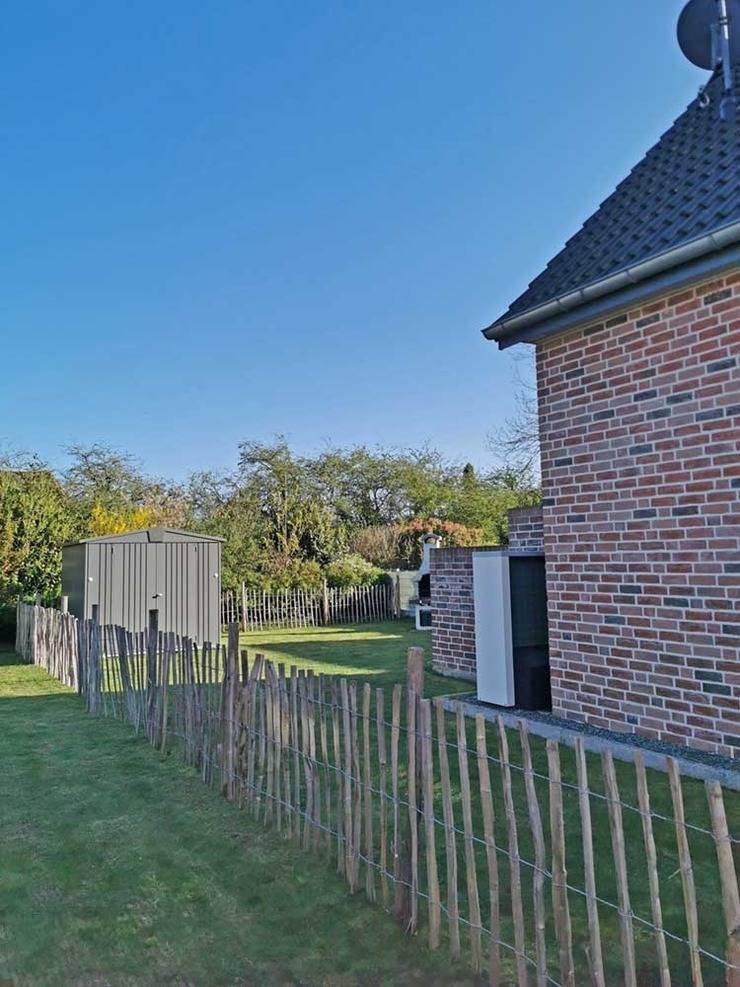 Es ist ein Außenabstellraum vorhanden und das Grundstück ist eingezäunt.
