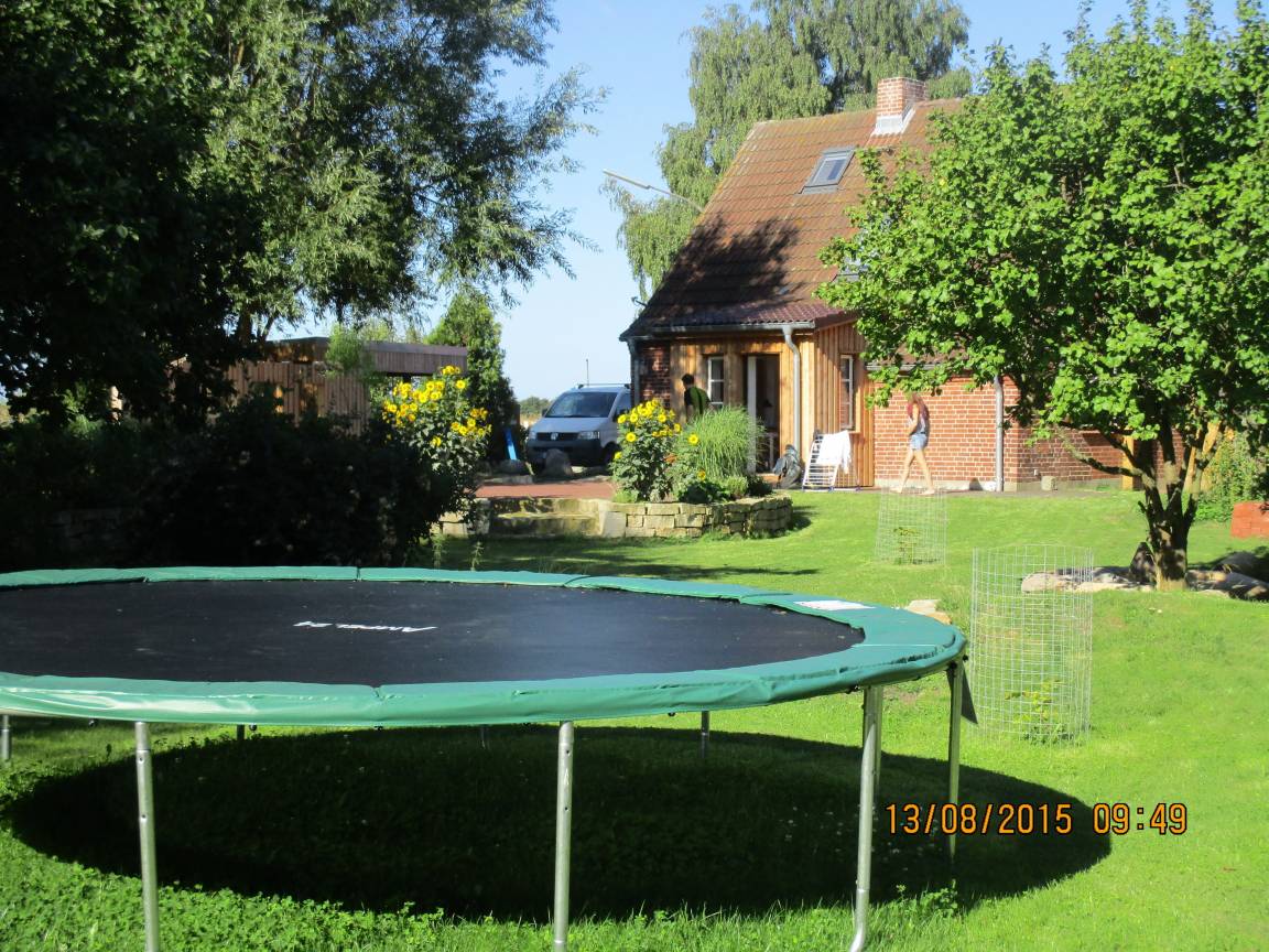 Das gemütliche Backsteinhäuschen mit großzügig angelegtem Garten in dörflicher Randlage inmitten der Felder gelegen, lädt ein zum Entspannen und Verweilen. Stauden, Beerensträucher, alte Obstbäume bilden eine wundervolle Ruheoase. Hier läßt es sich frühstücken, grillen, am Feuer sitzen, toben, spielen, sonnenbaden, lesen, den Vögeln und dem Wind lauschen, den Nachthimmel bestaunen oder einfach nur Sein.