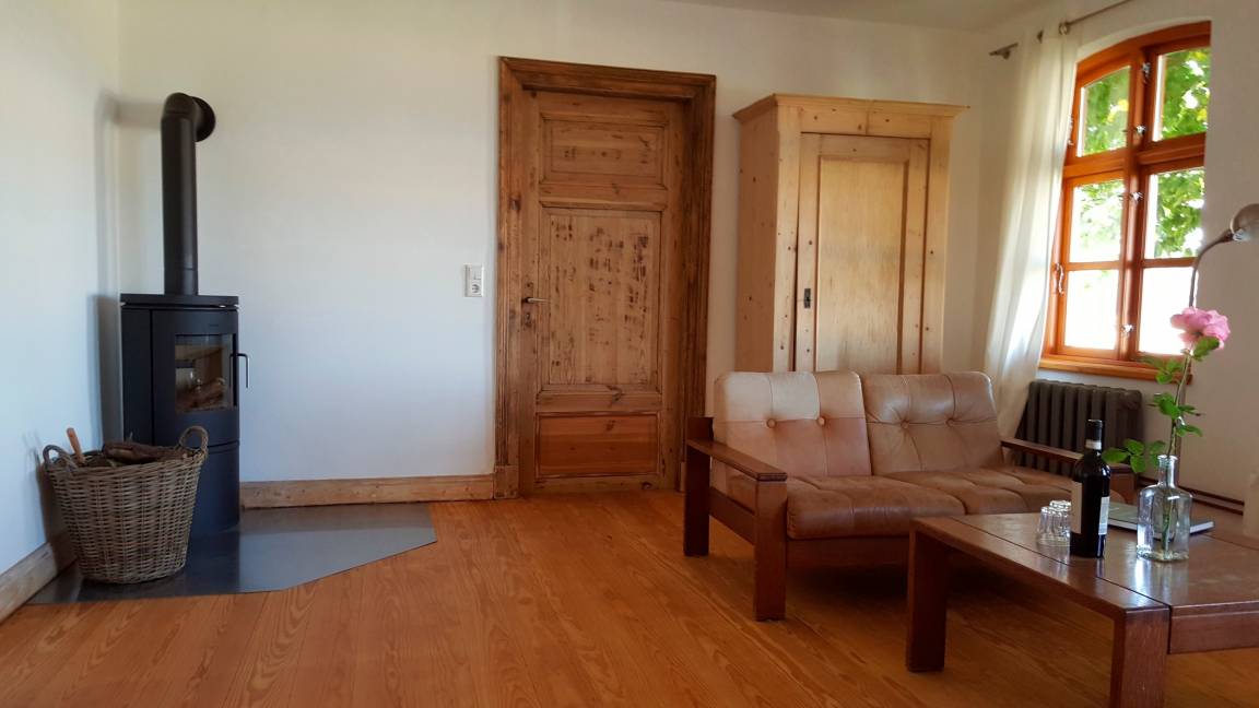 Die Ferienwohnung hat eine Wohnfläche von ca. 65 qm und ist aufgeteilt in ein Schlafzimmer, ein Wohn/Schlafzimmer mit Kaminofen, 1 Wohnküche und ein Duschbad. Zur Ausstattung gehören u.a. Geschirrspüler, SAT-TV, WLAN, Kinderbett und -hochstuhl. Nichtraucherwohnung! Eine Waschmaschine kann auf Anfrage genutzt werden. Es gibt 2 Terrassen mit Gartenmöbeln und eine Grillmöglichkeit (nach Absprache). Der große Apfelgarten mit altem Baumbestand lädt ein zum Verweilen.
