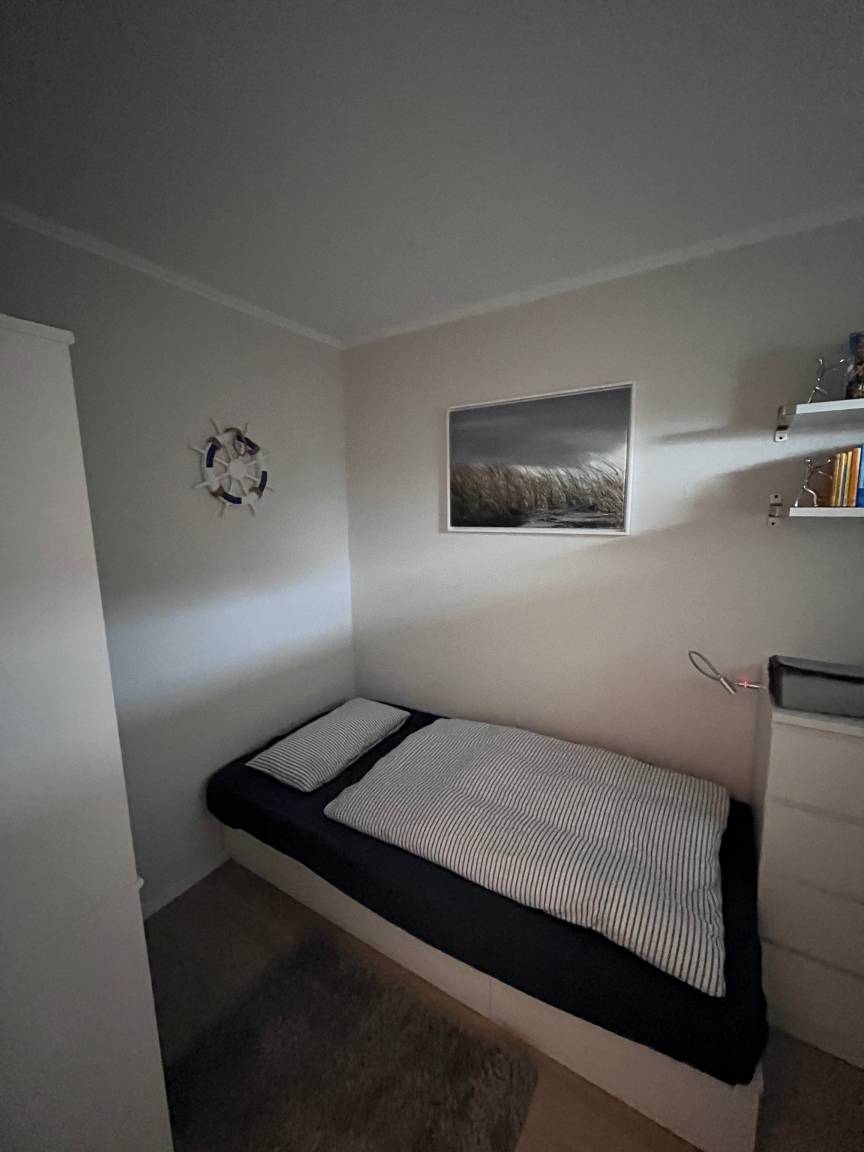 Zur technischen Ausstattung für die gute Unterhaltung gehören u.a. der sehr moderne Flachbildschirm mit SAT/Kabel-TV, DVD-Player, sowie Radio inkl. CD/BT/USB. Weiter steht Ihnen in der Wohnung kostenlos WLAN zur Verfügung. Um für Ihr leibliches Wohl zu sorgen stehen Ihnen in der gut ausgestatteten Küche u.a. ein Zwei-Platten-Induktionskochfeld, ein separater Ofen, sowie Kaffeemaschine, Wasserkocher, Toaster und Milchschäumer zur Verfügung. Der Wohn- und Essbereich ist mit einer bequemen großen Couch und Couchtisch sowie separatem Esstisch eingerichtet und lädt zum Entspannen ein. Der Schlafraum verfügt über ein Einzelbett von 1 Meter breite mal 2 Meter länge. Bei geöffnetem Fenster erwachen Sie hier am Morgen mit dem Lachen der Möwen. Das Badezimmer ist mit einer Badewanne inkl. Duschpaneel ausgeschattet und sorgt für wohliges Behagen.