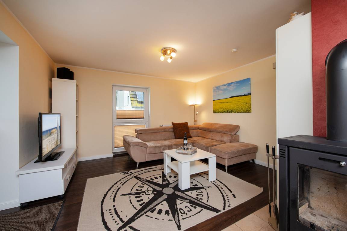 Diese traumhafte 3-Zimmer-Ferienwohnung mit Seeblick, einer ca. 26 m² großen teilüberdachten Sonnen-Terrasse inklusive Strandkorb, Kaminofen und eigener Sauna bietet für bis zu 4 Personen auf ca. 72 m² Wohnfläche jede Menge Entspannung.