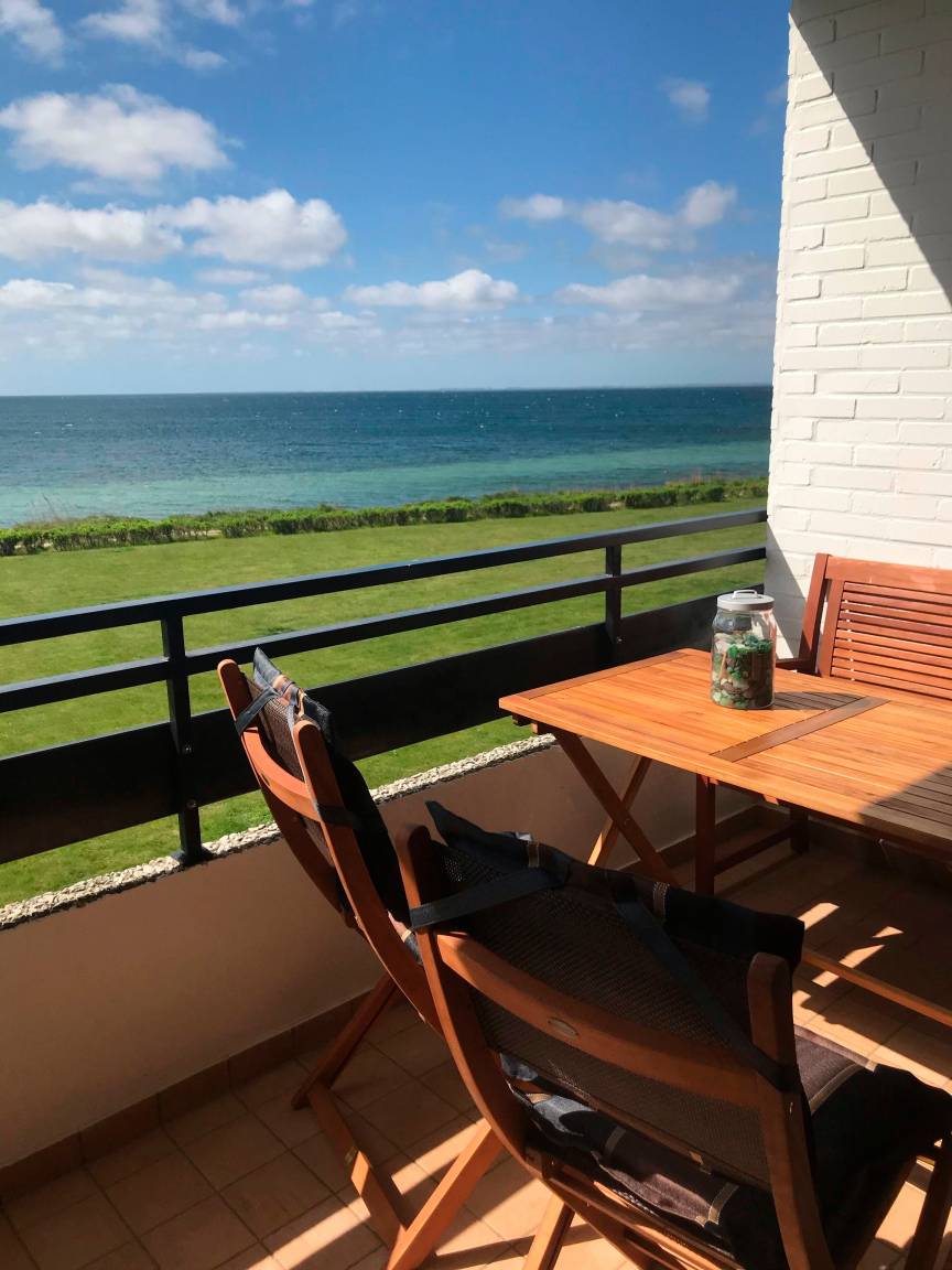 Der große überdachte Südbalkon bietet einen traumhaften Blick auf die Ostsee.