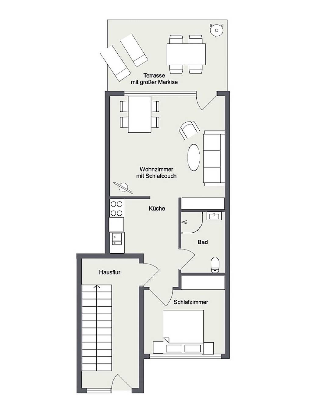 45 m² Ferienwohnung ∙ 1 Schlafzimmer ∙ 2 Gäste