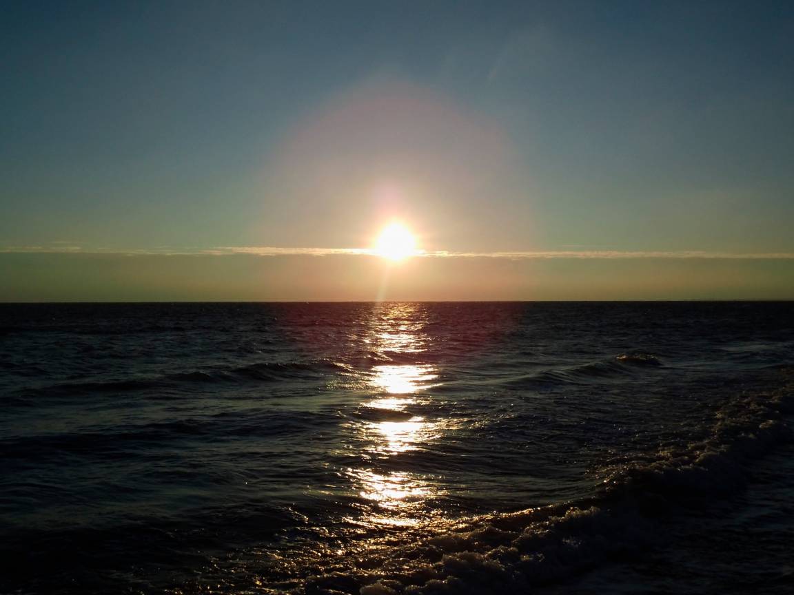 Auf dem mit Gartenmöbeln ausgestattete Süd-Balkon lässt es sich auch am Abend noch gemütlich sitzen um dem Rauschen der Wellen zu lauschen.