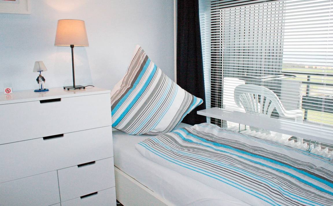 Die 43 qm große Zwei-Raum-Wohnung wurde 2015/2016 frisch renoviert und verfügt über ein Schlafzimmer mit zwei Einzelbetten (80 x 200 cm) mit SmartLine Wendematratzen (mir zwei unterschieldichen Härtegraden), einer Kommode und einem SAT/Kabel-TV.