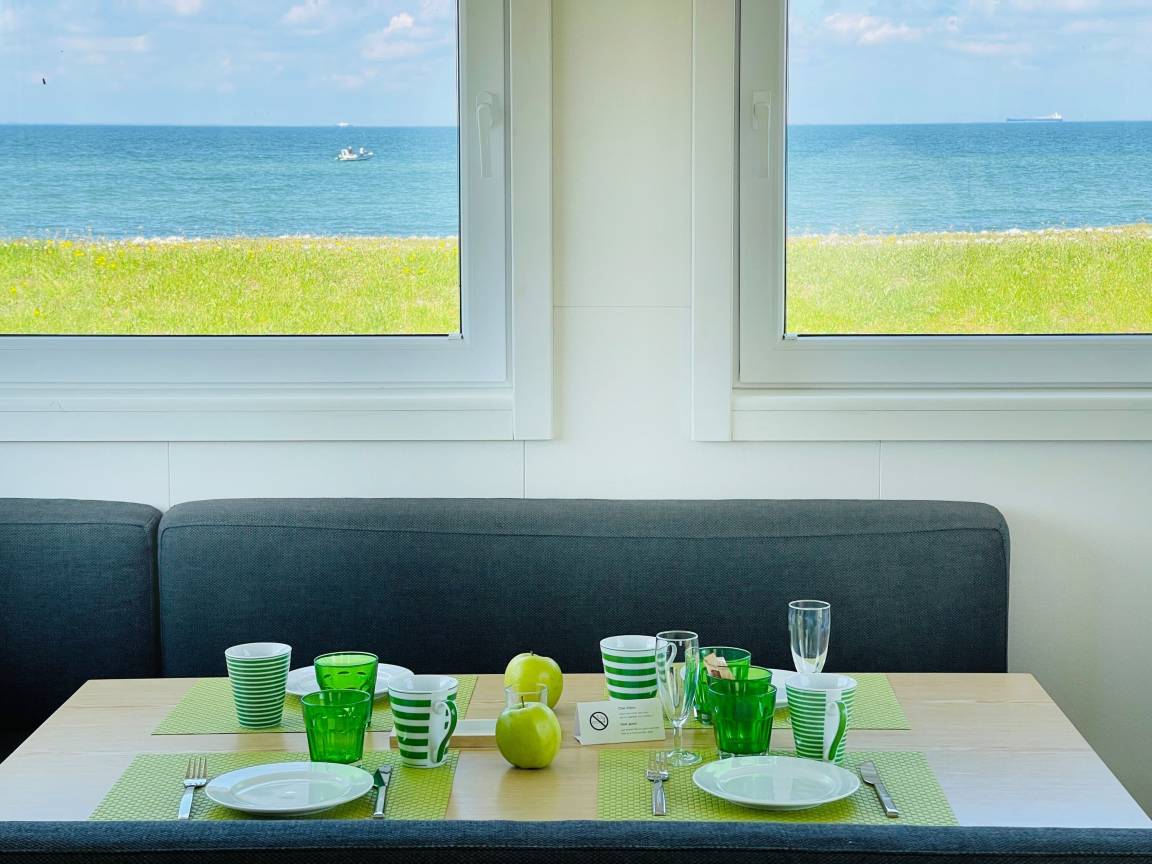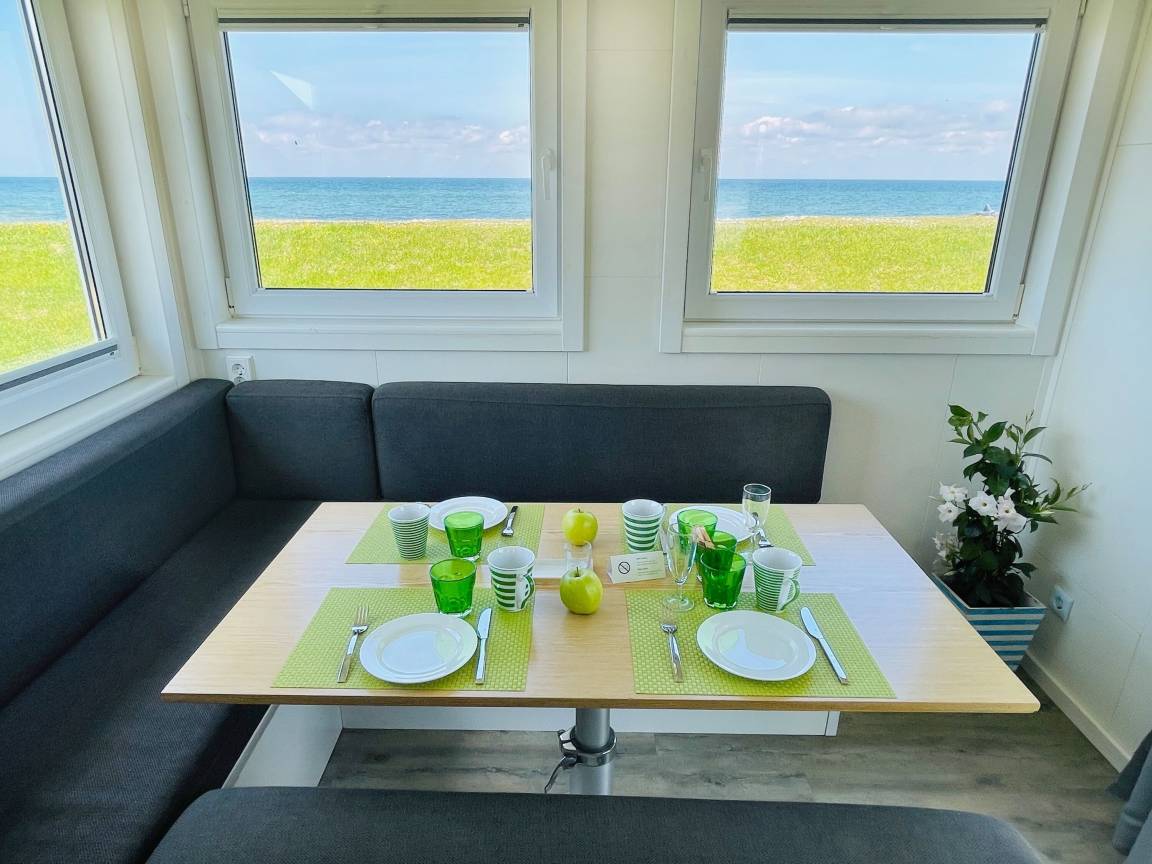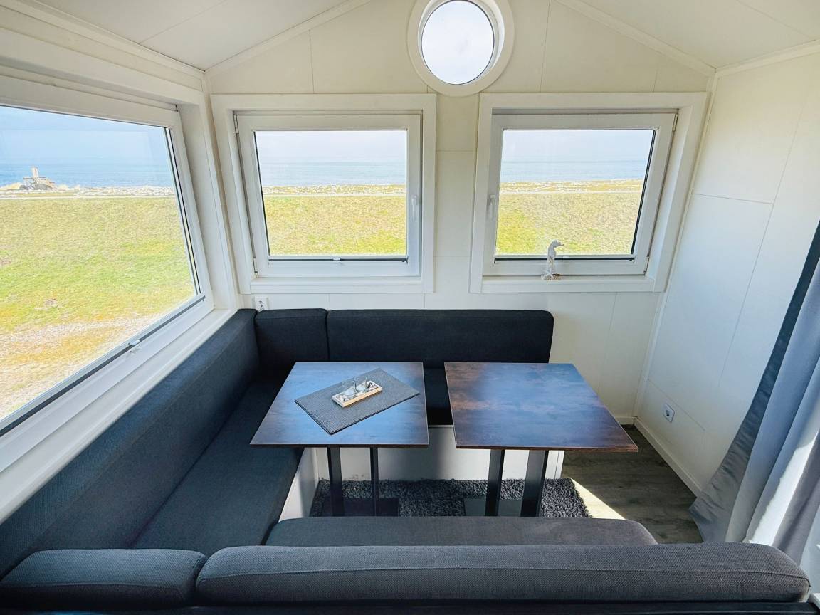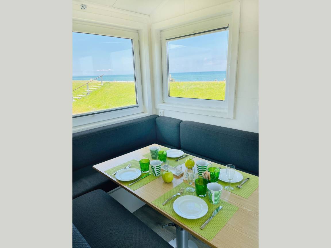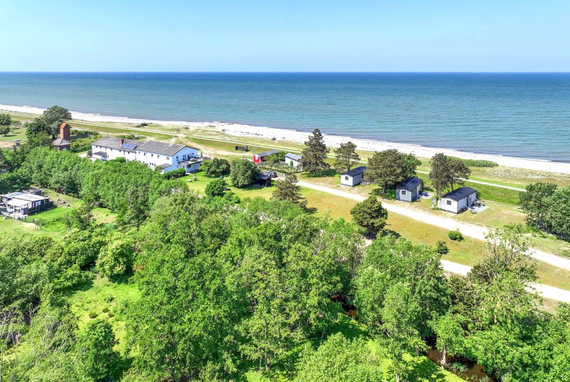 Im malerischen Garten des Gutes Teichhof erwartet Sie das Tiny House James Cook für Ihren entspannten Urlaub am Meer. Dieses charmante Strandhaus bietet Platz für maximal 2 Erwachsene und verspricht einen unvergleichlichen Meerblick. Genießen Sie die Behaglichkeit eines Doppelbettes im Schlafzimmer sowie des eigenen Badezimmers mit Dusche. Die Wohnküche lädt zu gemeinsamen Kocherlebnissen ein und ist mit Annehmlichkeiten wie einer Filterkaffeemaschine, Mikrowelle und Spülmaschine ausgestattet. An sonnigen Tagen lädt Ihre private 15 m² große Terrasse im Garten zum Entspannen und Genießen ein. Im Wohnzimmer mit TV, DVD und HiFi-Anlage finden Sie erholsame Stunden der Unterhaltung. Der Strand liegt direkt vor, fast schon unter Ihrer Tür und verspricht Momente der Ruhe und Erholung. Überdachte Fahrradabstellmöglichkeiten und Parkplätze für Ihr Auto stehen auf dem Gelände des Gutshofs zur Verfügung. Die einzigartige Lage des Teichhofs ermöglicht es Ihnen, die idyllische Natur zu erkunden, während Sie zugleich von der Nähe zu zwei Restaurants und der nächsten Stadt profitieren, die nur 5 Kilometer entfernt liegt und eine Vielzahl von Einkaufs- und Restaurantmöglichkeiten bietet. Als familien- und radfreundliche Unterkunft heißen wir auch Ihren Hund herzlich willkommen. Zum Be- und Entladen können Sie gerne direkt am Strandhaus halten. Das Check-in erfolgt bequem eigenständig. Auf dem Gelände des Teichhofes erwartet Sie zudem ein Streichel-Zoo mit Schafen und eine Wiese mit Ponys. Das Tiny House James Cook bietet somit die ideale Kombination aus Ruhe und Erholung sowie der Nähe zu verschiedenen Aktivitäten und Annehmlichkeiten für einen unvergesslichen Urlaub.