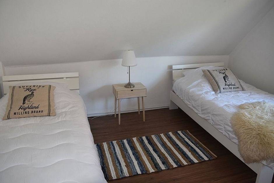 Die Wohnung verfügt über 1 Schlafzimmer mit 2 Einzelbetten (Betten können zusammen stehen oder als 2 Einzelbetten auseinander geschoben werden), 1 Schlafzimmer mit 1 Tagesdoppelbett (einzeln oder zu zweit nutzbar/ausziehbar).