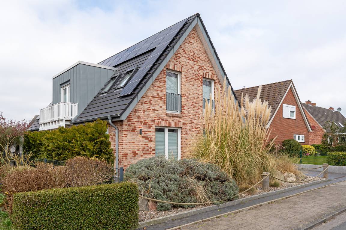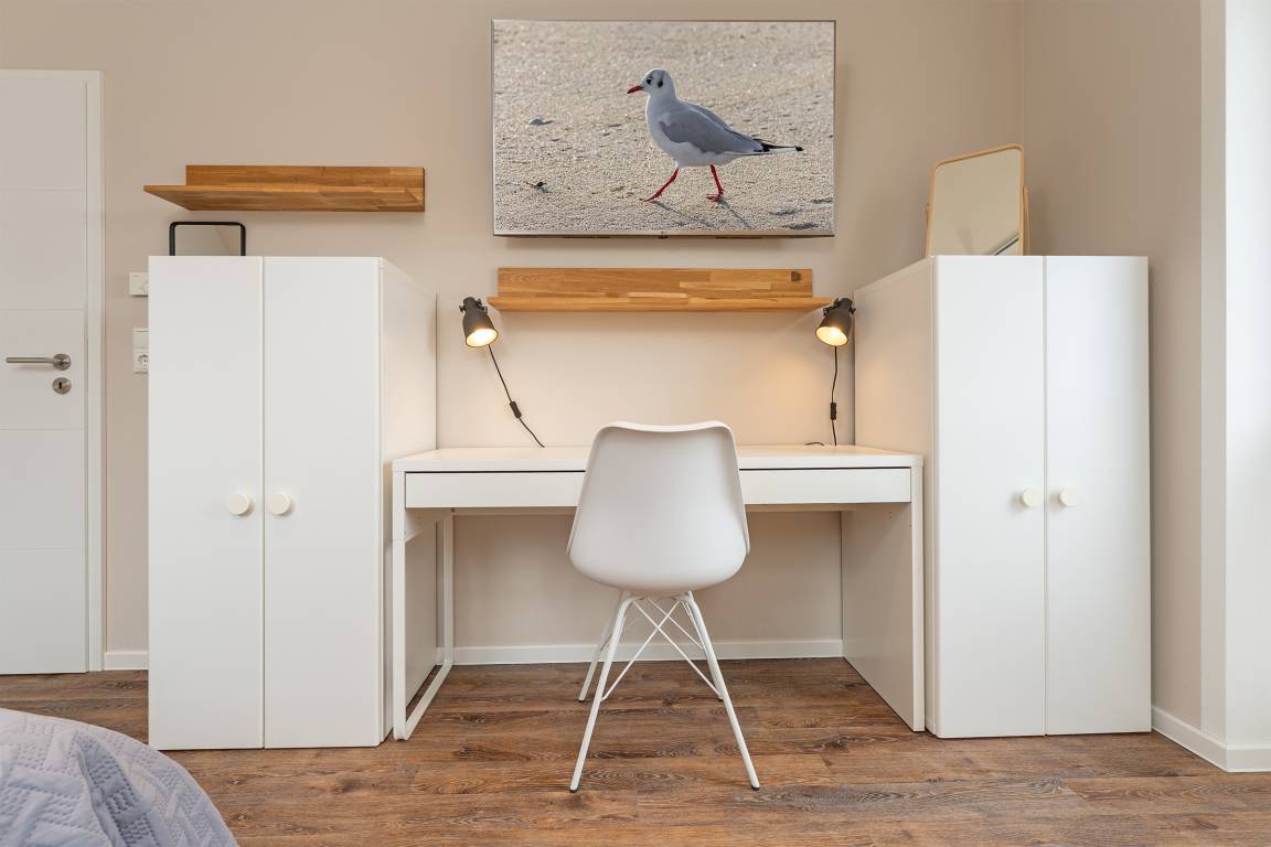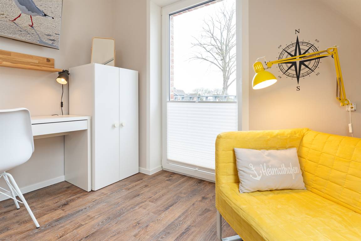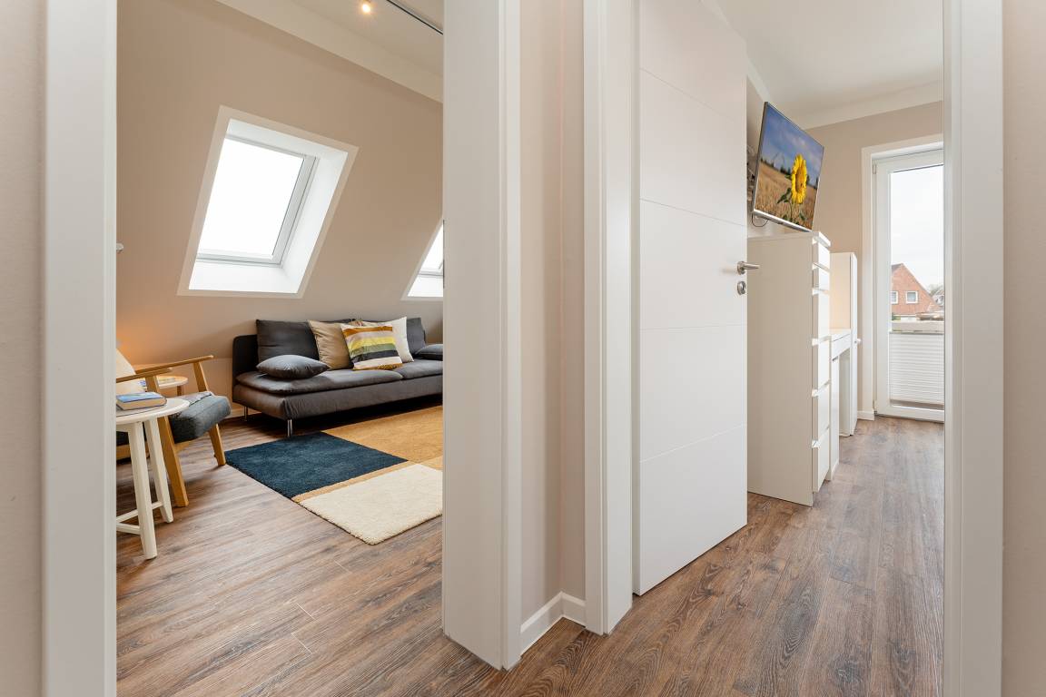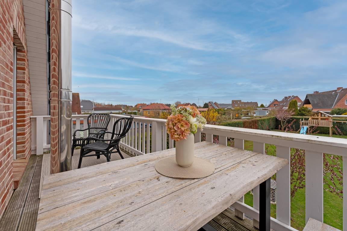 Modern eingerichtete 4-Zimmer-Ferienwohnung im 2. Stock mit Balkon in Burg auf der Sonneninsel Fehmarn bietet auf 78 m² genug Platz für bis zu 5 Gäste.