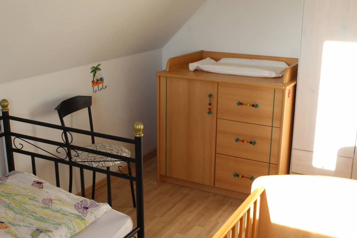 Eines der Zimmer verfügt zusätzlich über eine "Babyausstattung" mit Gitterbett und Wickelkommode.