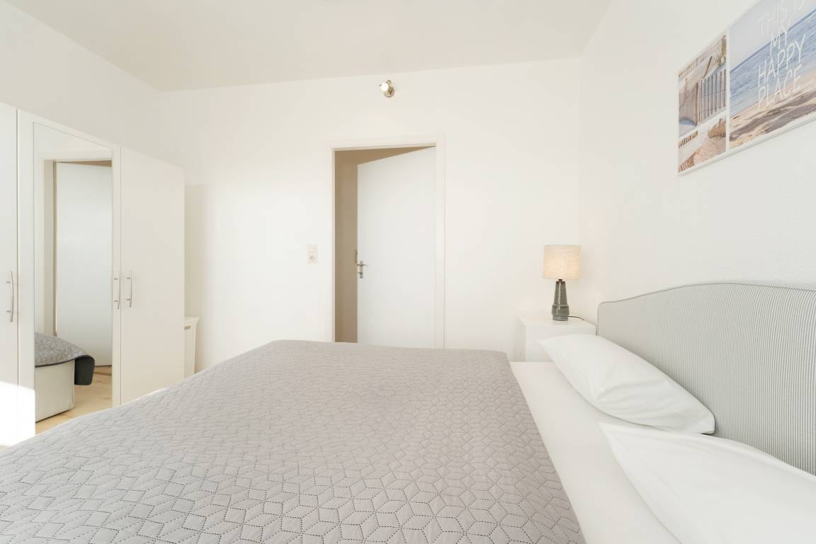 Der perfekte Standort der Wohnung, nur 100 Meter vom Strand entfernt, ermöglicht es Ihnen, das Meeresrauschen jederzeit zu genießen. Die Wohnung selbst überzeugt durch ihre moderne und lichtdurchflutete Gestaltung. Der schöne Wohnbereich ist mit einem komfortablen Sofa ausgestattet und lädt zum Verweilen mit einem guten Buch oder einem Filmabend am Fernseher ein. Der angrenzende Küchenbereich ist ideal, um gemeinsam zu kochen und zu essen. Genießen Sie den Panoramablick aufs Meer aus einem der großen Fenster oder vom überdachtem Balkon aus. Die Wohnung verfügt über zwei Schlafzimmer, eins mit einem Doppelbett und eins mit einem Etagenbett. Das gepflegte Duschbad ist hell gefliest. Auf geht es in den nächsten Urlaubstag: Der nahegelegene Naturstrand lädt zum Baden ein, aber auch Wassersportliebhabern bietet er viele Möglichkeiten. Auf dem fußläufig erreichbaren Campingplatz finden Sie ein Supermarkt sowie Restaurants und Spielmöglichkeiten für Kinder.