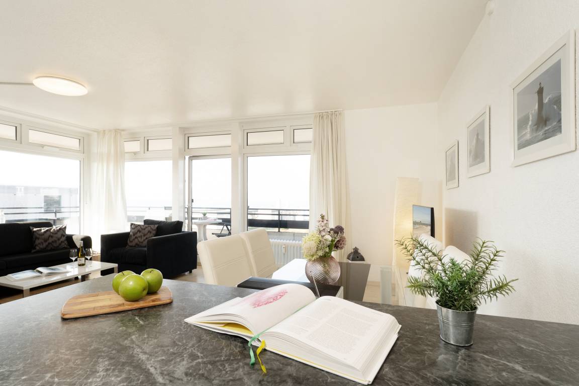 Die schicke 3-Zimmer Ferienwohnung Panorama Meerblick 2 liegt in direkter Strandnähe im Südosten der Insel Fehmarn. Die 67 m² große, helle Wohnung befindet sich im 1. Stock und ist für 2 Erwachsene und 2 Kinder geeignet.