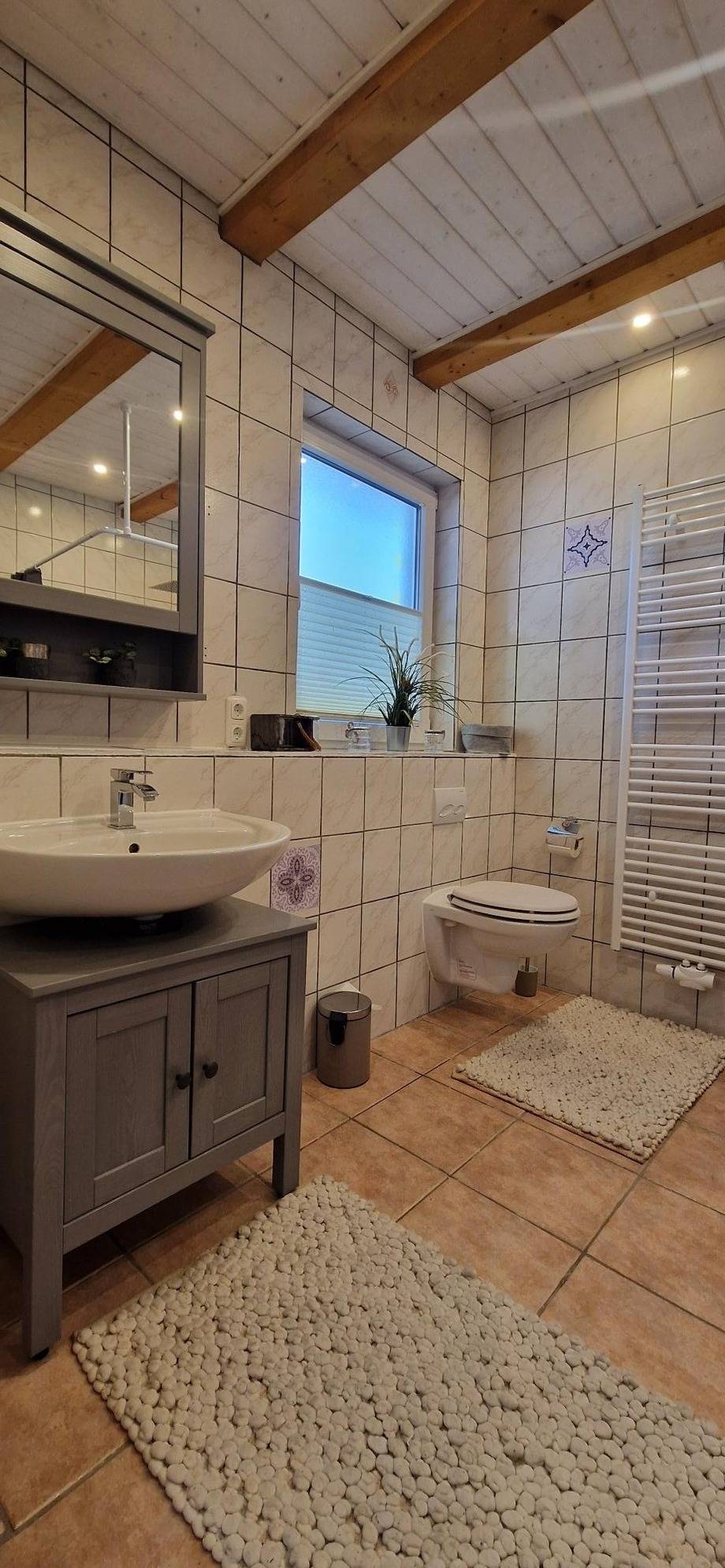 Auf dieser Ebene gibt es ein WC mit Waschbecken.