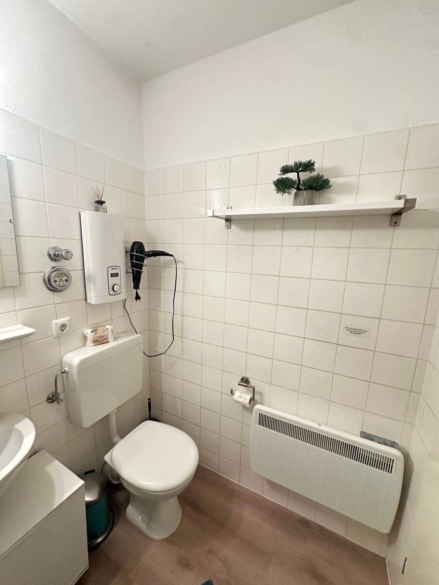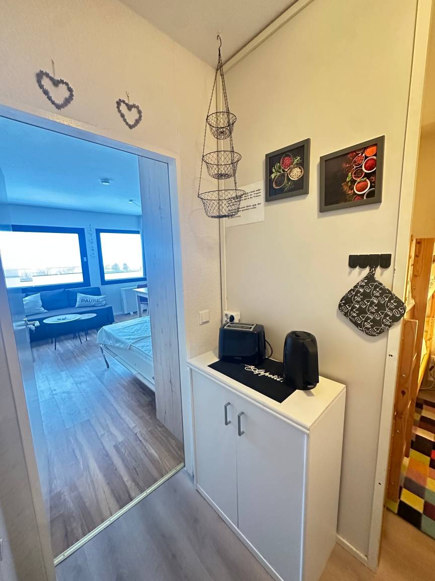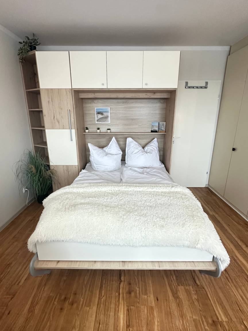1-Raum-Appartement im 2 Obergeschoss (29m²), Nichtraucher. Das Wohn-Schlafzimmer ist in einen Schlaf- und einen Wohnbereich aufgeteilt. Schlafbereich mit Schrankbett, Zubehör und Kleiderschrank. Der Wohnbereich verfügt über eine Schlafcouch mit kleinem Tisch, Essecke mit 4 Stühlen. Die Küchenzeile ist mit einem kleinen Ceranfeld sowie einer Mikrowelle, Kaffeemaschine, Wasserkocher und Toaster versehen. Anliegend an der Küchenzeile ist noch eine Schlafnische mit einem Stockbett für 2 Kinder oder auch Erwachsene vorhanden. Das angrenzende Bad hat eine Badewanne mit Duschabtrennung, WC und ein Waschbecken. Außerdem stehen den Gästen ein nummerierter Parkplatz vor der Wohnung (58-207)direkt vorm Haus zur Verfügung, Kostenloses W-Lan steht ihnen in kürze zur Verfügung.