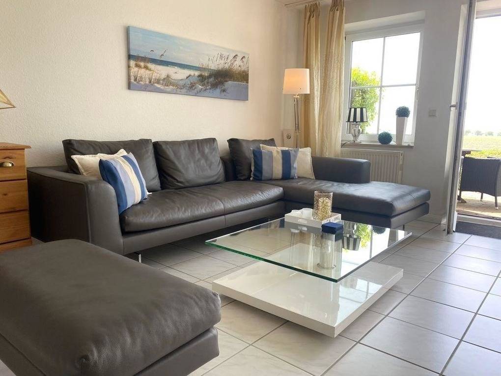 Die Ferienwohnung liegt im Ortsteil Neue Tiefe im Süden Fehmarns in direkter Näher zum Burger Binnensee. Sie erstreckt sich über das Erdgeschoss und den Souterrain und verspricht Ruhe und Erholung.