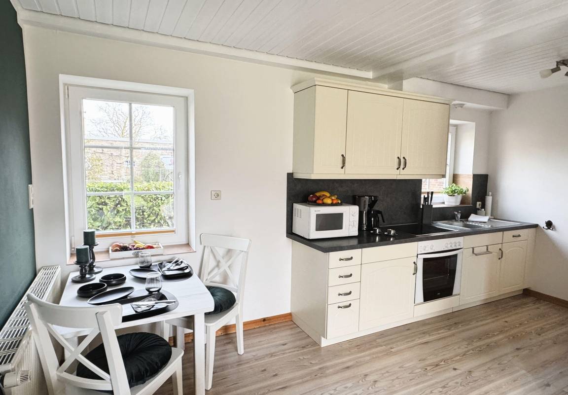 Unsere schöne, gemütliche und voll ausgestattete 35 m² ebenerdige Ferienwohnung für bis zu 2 Personen bietet Ihnen sowie Ihrem vierbeinigen Familienmitglied (Hund) einen erholsamen Urlaub auf dem Ferienhof Wohler - Hof Anno 1856 - im idyllisch gelegenen Küstenörtchen Bojendorf auf der Insel Fehmarn. Die Ferienwohnung bietet Ihnen vollen Komfort: auf bequemen Clubsesseln in der schnuckeligen Wohnküche mit heimeligen Essbereich können Sie wunderbar relaxen, Ihren Krimi am Smart-TV genießen oder entspannt zu Abend essen und den Tag ausklingen lassen. Gekocht wird in der vollausgestatteten Küche: u.a. Geschirrspüler, Toaster, Mikrowelle, Mixer, Wasserkocher sowie Kaffeemaschine. Weiterhin hat die Ferienwohnung ein Badezimmer mit Dusche und einem Waschbecken. Es gibt ein Schlafzimmer mit einem Doppelbett (1,80 m x 2,00 m) und geräumigen Kleiderschrank (inklusive Safe). W-Lan steht Ihnen in der gesamten Ferienwohnung kostenlos zur Verfügung. Die zur Wohnung gehörige Terrasse lädt im Strandkorb oder auf den zwei Liegen zum Sonnenbaden sowie zum Frühstücken im Freien unterm Sonnenschirm mit Blick in den Garten oder zu gemütlichen Grillabenden mit zur Wohnung gehörigem Grill ein.