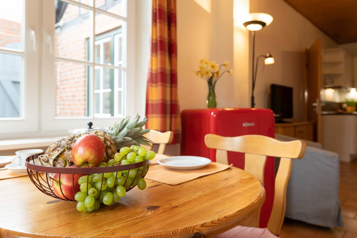 Mit offener Kücheund einem Wohnessbereich, 2 Schlafzimmern und einem Bad lädt diese helle Ferienwohnung zum Wohlfühlen ein.