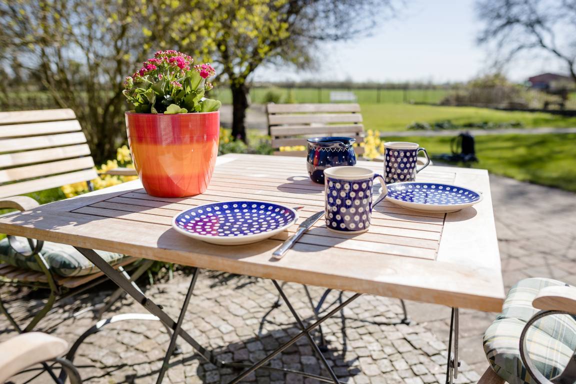 Sie gelangen über die Terrasse direkt in den schönen Bauerngarten.Unser Dorf liegt abseits aller Hauptstrassen und ist somit sehr ruhig.