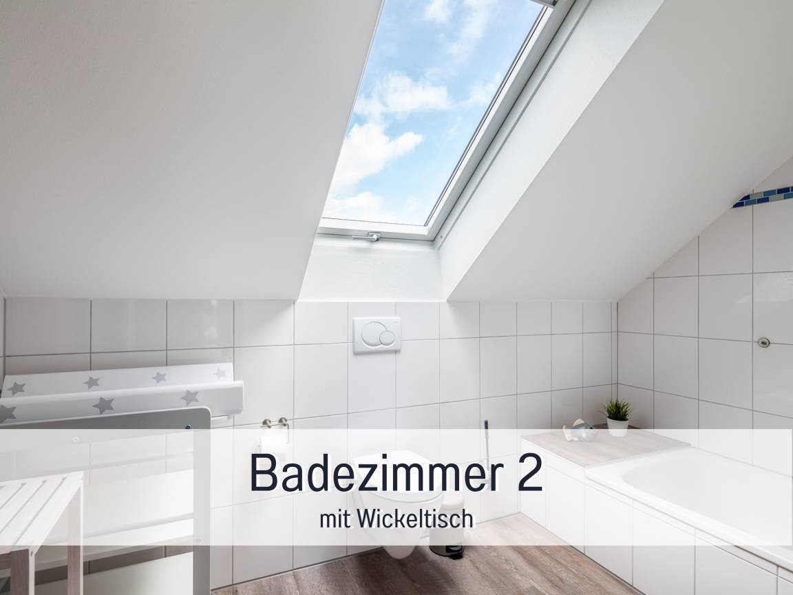 - Bad im Obergeschoss mit Duschwanne und Wickeltisch
