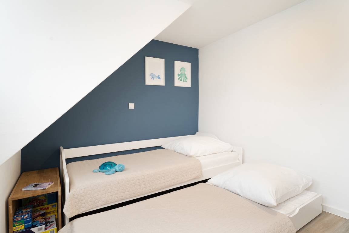 Schlafzimmer 3 (1. OG): 2 Einzelbetten (je 90x200 cm), Kleiderschrank, Verdunkelung: Plissee, (kein) Platz für ein Babybett vorhanden