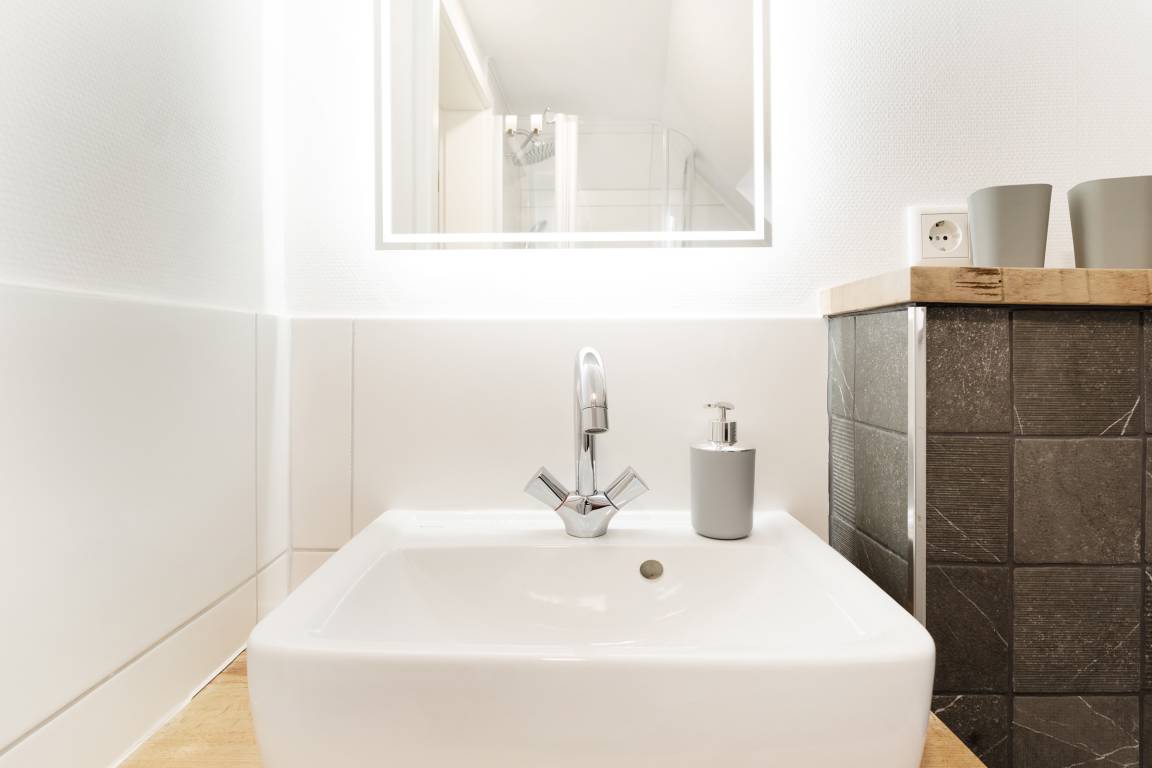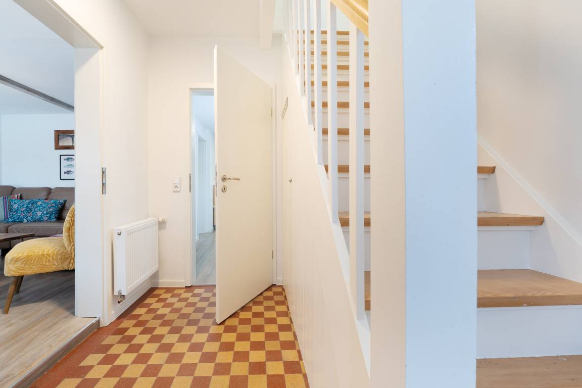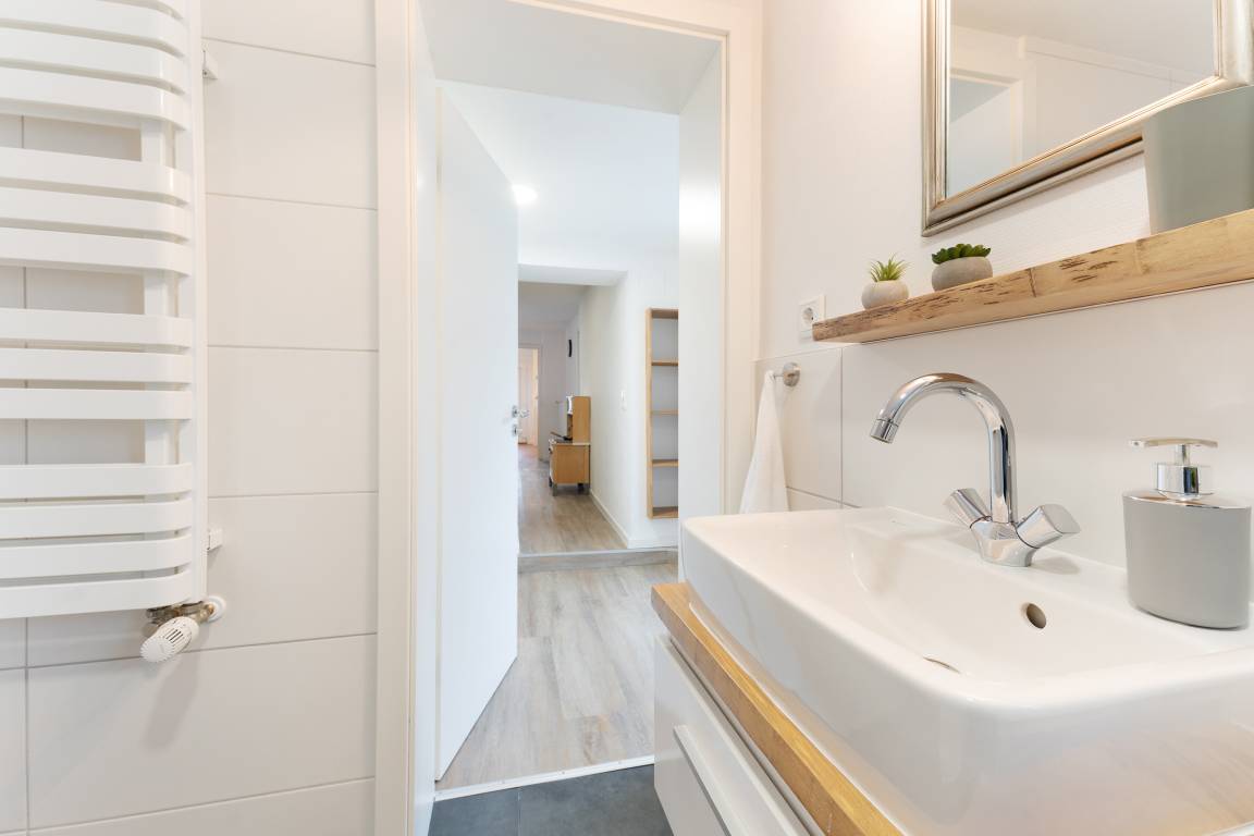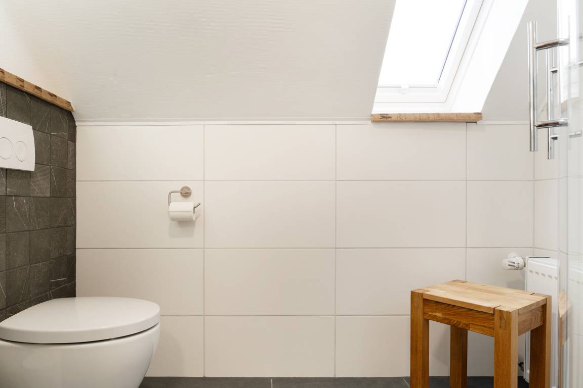 Zwei moderne Bäder runden den Komfort ab. Beide sind mit bodengleichen Duschen und WCs ausgestattet. Im Erdgeschoss sorgt eine Handtuchheizung für angenehme Wärme. Für die kleinen Gäste stehen ein Kinderhochstuhl und ein Kinderreisebett bereit.
