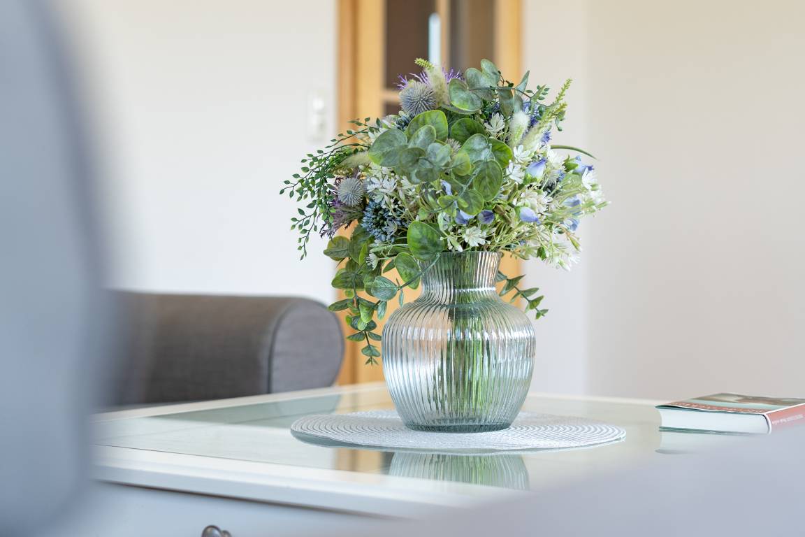 In dem Appartementhaus gibt es noch eine zweite Ferienwohnung. Das Grundstück ist knapp 1.000 m² groß und für beide Parteien der Ferienwohnungen zugängig. Für die Dachgeschosswohnung gibt es im Garten zusätzlich einen eigenen Terrassenbereich. Das große Wiesengrundstück erlaubt ausreichend Platz für jede Mietpartei.