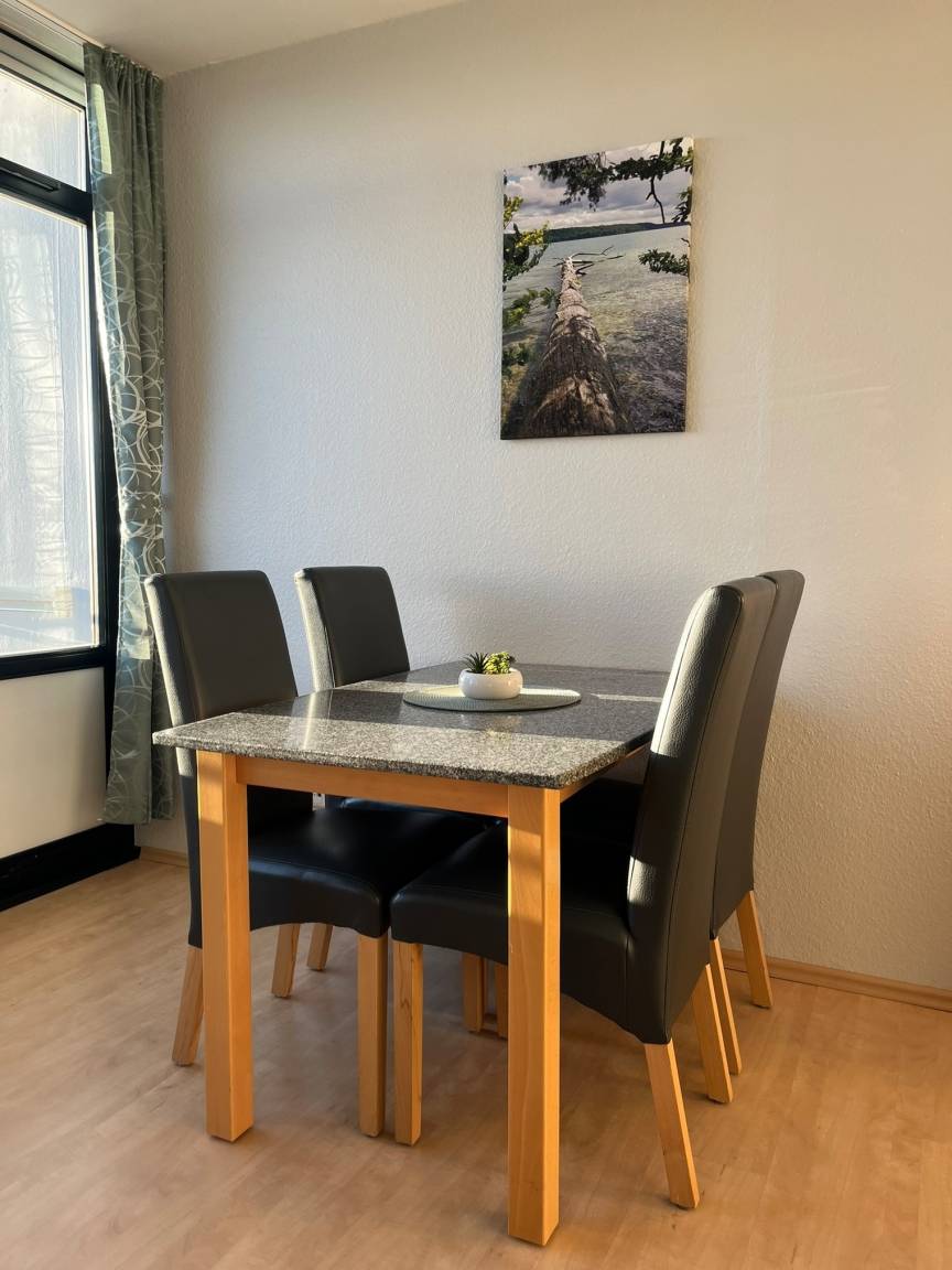 Hier können Sie auf bequemen Gartenstühlen romantische Sonnenuntergänge genießen. Die Wohnung mit einer Wohnfläche von 49qm verfügt über einen großen Wohn-, Essbereich mit herrlichem Meerblick, einem LCD-Fernseher und einer Mini-Hifi Anlage. Im Schlafbereich befindet sich ein großes Doppelbett mit guten neuen Matratzen und verstellbaren 5-Zonen Lattenrosten. Für den erholsamen Schlaf ist eine Insektenschutztür und Verdunklungsrollos an den Fenstern angebracht. Im separaten Kinder-, Jugend- bzw. "Schnarcherzimmer" befindet sich ein stabiles Etagenbett mit großer Kopffreiheit im unteren Bett. Die Küche ist mit einem 4er Ceranfeld, Dunstabzugshaube, Backofen, Mikrowelle, Geschirrspülmaschine, großem Kühlschrank mit Gefrierfach, Kaffeemaschine, Toaster, Wasserkocher, Brotmaschine, Mixer, Pürierstab, Eierkocher und sehr viel Geschirr und Zubehör ausgestattet. Unser Bad wurde komplett neu mit Hänge-WC, Runddusche mit Echtglas-Duschwand, Waschtisch mit großem Spiegel und hellen Lampen renoviert und mit Badmöbeln ausgestattet. Die Wohnung ist allergikergerecht im Wohn-/Schlafbereich mit Laminat und im Flur-/Küchenbereich mit Fliesen ausgelegt. Sie finden in der Wohnung aus hygienischen Gründen keine Teppiche. Trotzdem hat die Wohnung ein freundlich-warmes Ambiente. In der näheren Umgebung finden Sie alles, was Sie für einen erholsamen Urlaub benötigen: Strandkörbe, Restaurants, Eisdiele, Bäckerei, Lebensmittelmarkt, Spielplätze, Trampolinanlage, Beachsoccerplatz, Tourismus-Information, Fitnessstudio, Quarkeria, Waschsalon, Yachthafen, Meerwasserwellenbad (Fehmare).